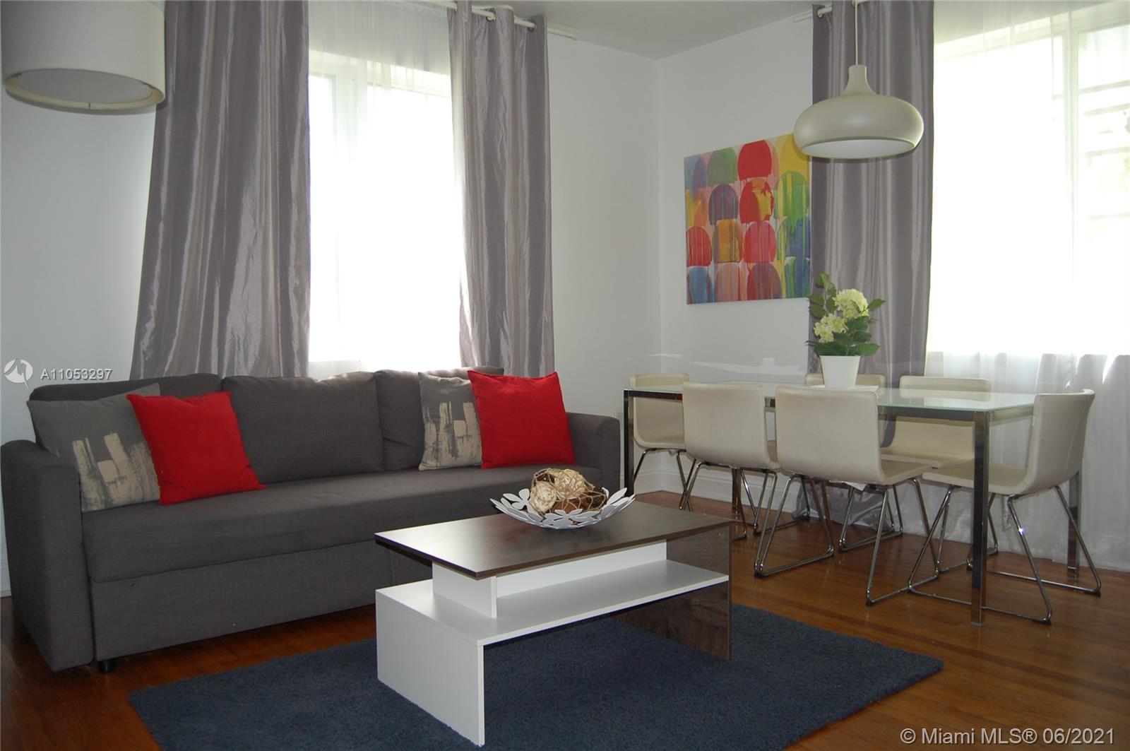 Charming Spanish Mediterranean building, Unit completely remodeled and fully furnished- ready to use, 2 bedrooms, 2 bath, located in the first floor, great layout , living and kitchen area separate from the bedrooms by a hallway. Wood floors ,washer & dryer, internet and cable pre wired in the unit to be connected. Beautiful kitchen with SS appliances. Excellent location , few blocks from the beaches, Lincoln Rd. and Flamingo Park. Come and see it you will love it.