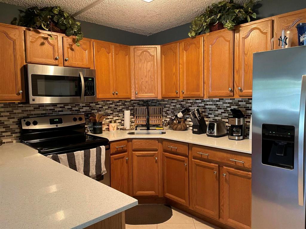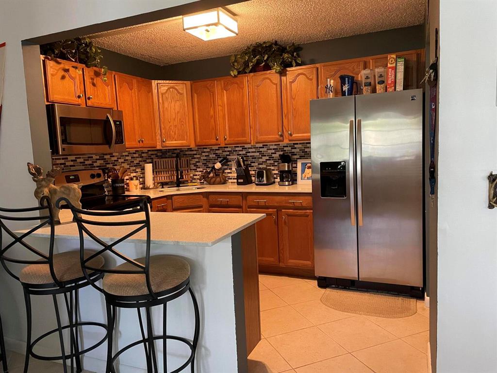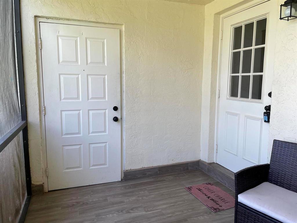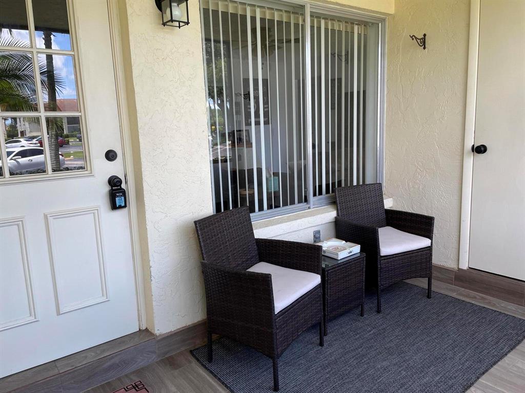Large ground floor corner two bedroom, two full bath home. Laundry room off the updated kitchen with breakfast bar. Front porch is screened and comfortable. Windows galore make for a bright happy Florida home. Extremely well maintained. Ready to move-in. Roof is one year old. New instant hot water heater installed in June 2021.