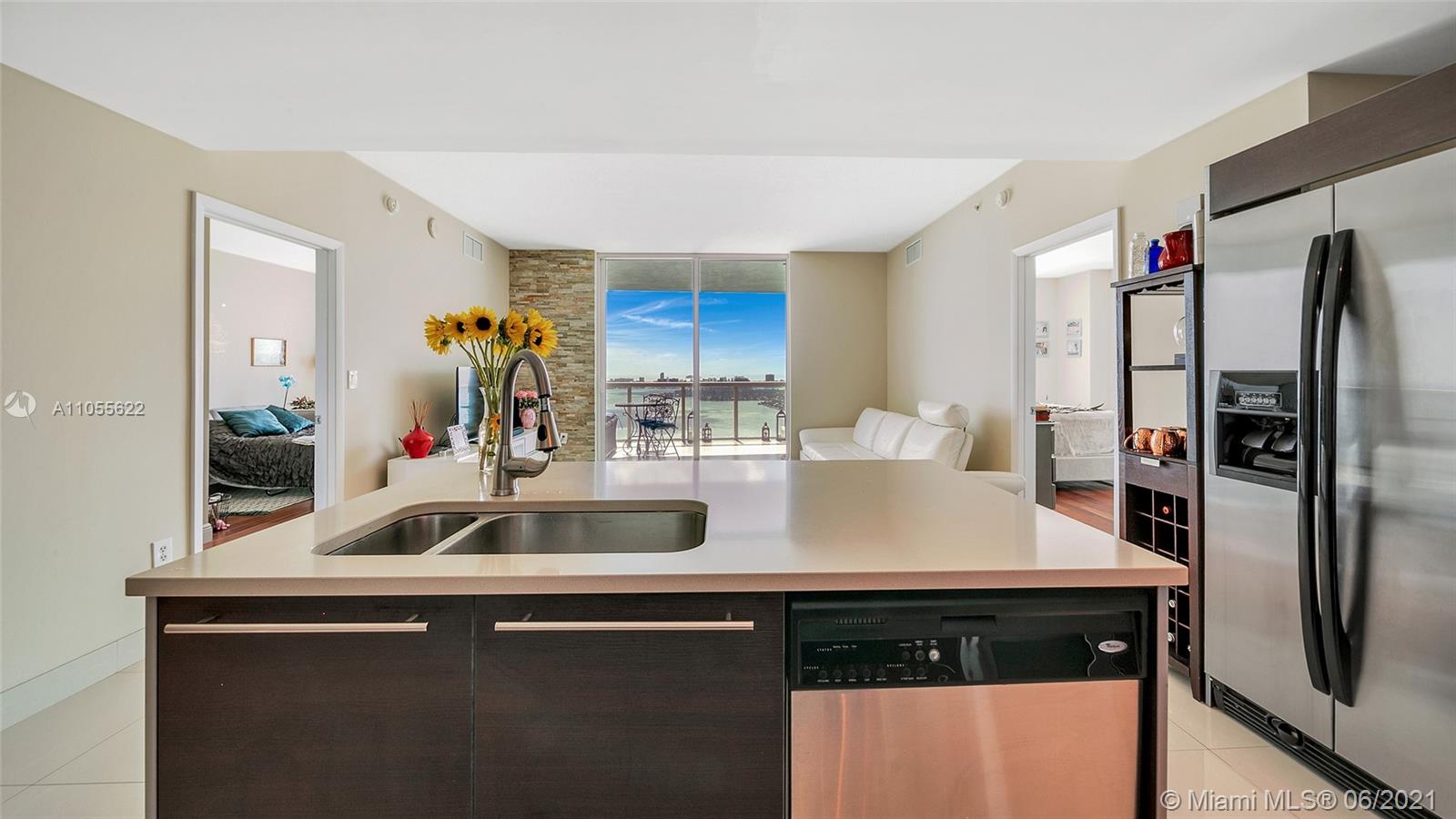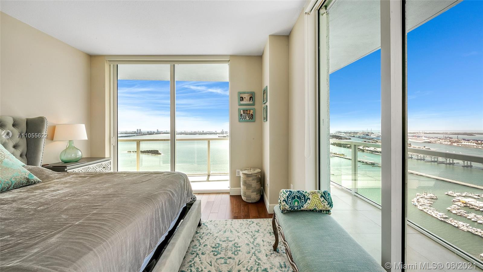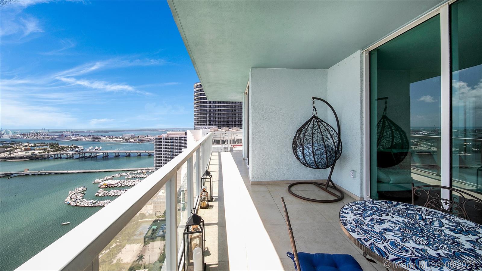 Live and enjoy the true Miami lifestyle from this 2 bedroom residence that offers breathtaking unobstructed Biscayne Bay views from every room and enormous wrap around terrace. This spectacular waterfront unit boasts an open floor plan with new porcelain tile flooring in living areas and wood in bedrooms. Much character has been given to this condo with gorgeous stone accent walls, European style kitchen and blackout window treatments and custom closets in bedrooms. Full service building with endless amenities. Free high-speed WiFi & water is included in the maintenance security.