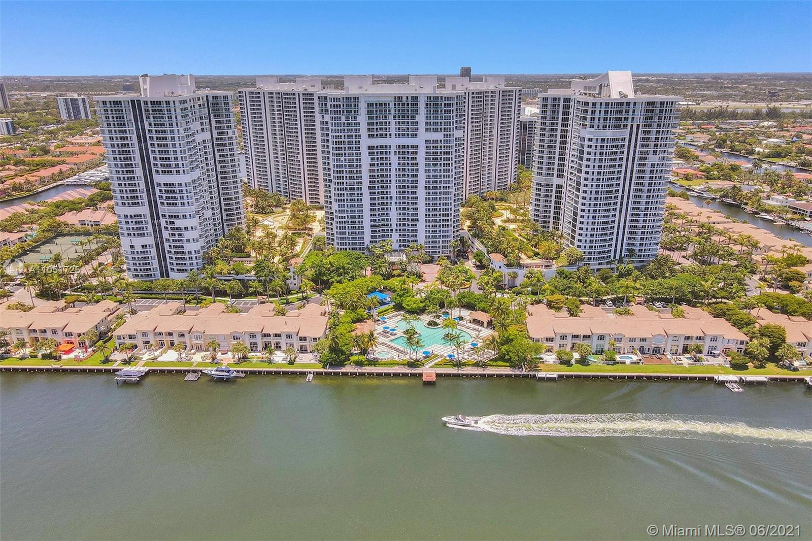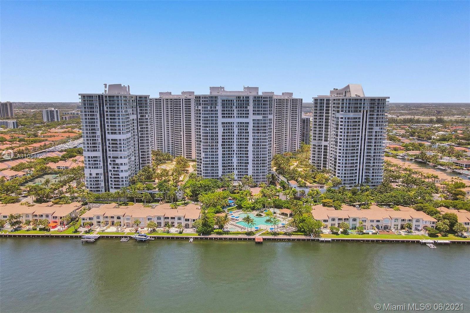 Bright and spacious corner unit in move-in condition. 3 bedrooms, 2.5 baths. Tile throughout, newer appliances, A/C and water heater. Motorized shades in all the windows, panoramic views. Open kitchen with breakfast area facing the marina of the Waterways. Spacious master bedroom, walk in closets. Elegant lobby has just been renovated by Steven G. Resort lifestyle: 3 pools, tennis courts, spa, fitness center and clubhouse. Outdoor café, BBQ area & kids playground. Walking distance to restaurants and shops. Call/text listing agent. Special assessments paid in full