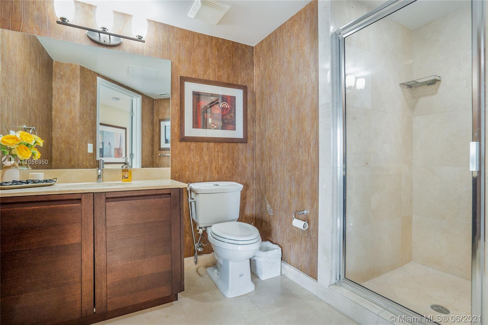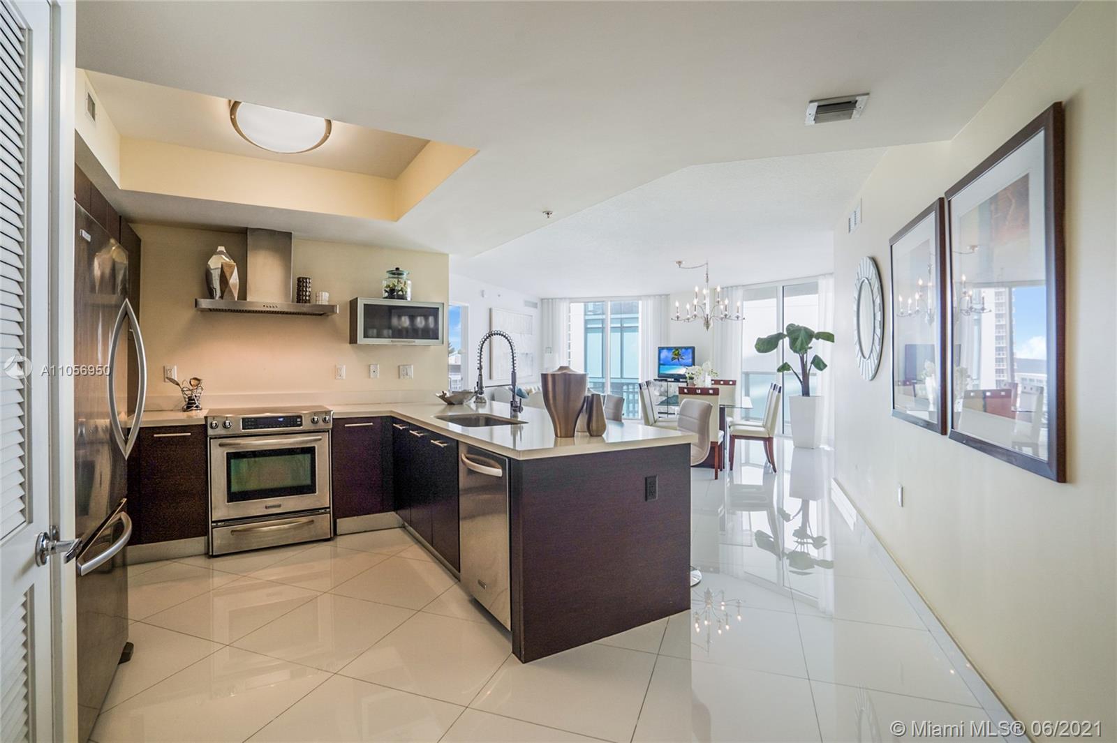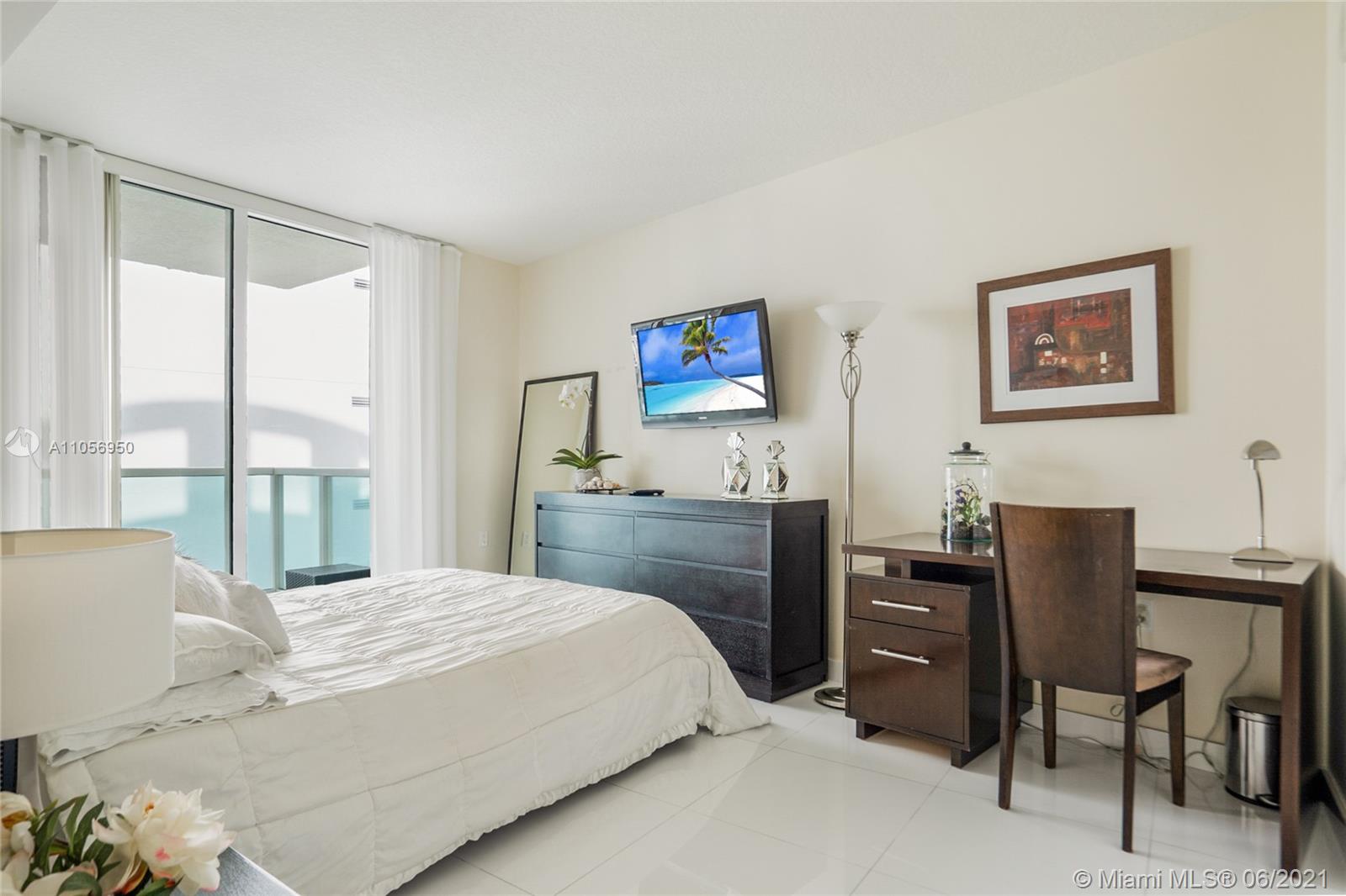 Beautiful and available immediately! Faces east with views to the south and north. Features white porcelain floors throughout entire unit, high impact sliding doors and windows, modern window treatment, open kitchen, master suite with walk-in closet, master bathroom with tub and separate shower, wrap around balcony. Bright with neutral colors. The building offers clubhouse, gym, spa, pool, cabanas and beach club . Also offers 24-hr valet/security services. 1 assigned parking space and second valet space. Pedestrian promenade with shops, restaurants and more! The beach is just across the street and St.Tropez offers access to a beach club (Sole) for its residents! The apartment comes with a storage unit!