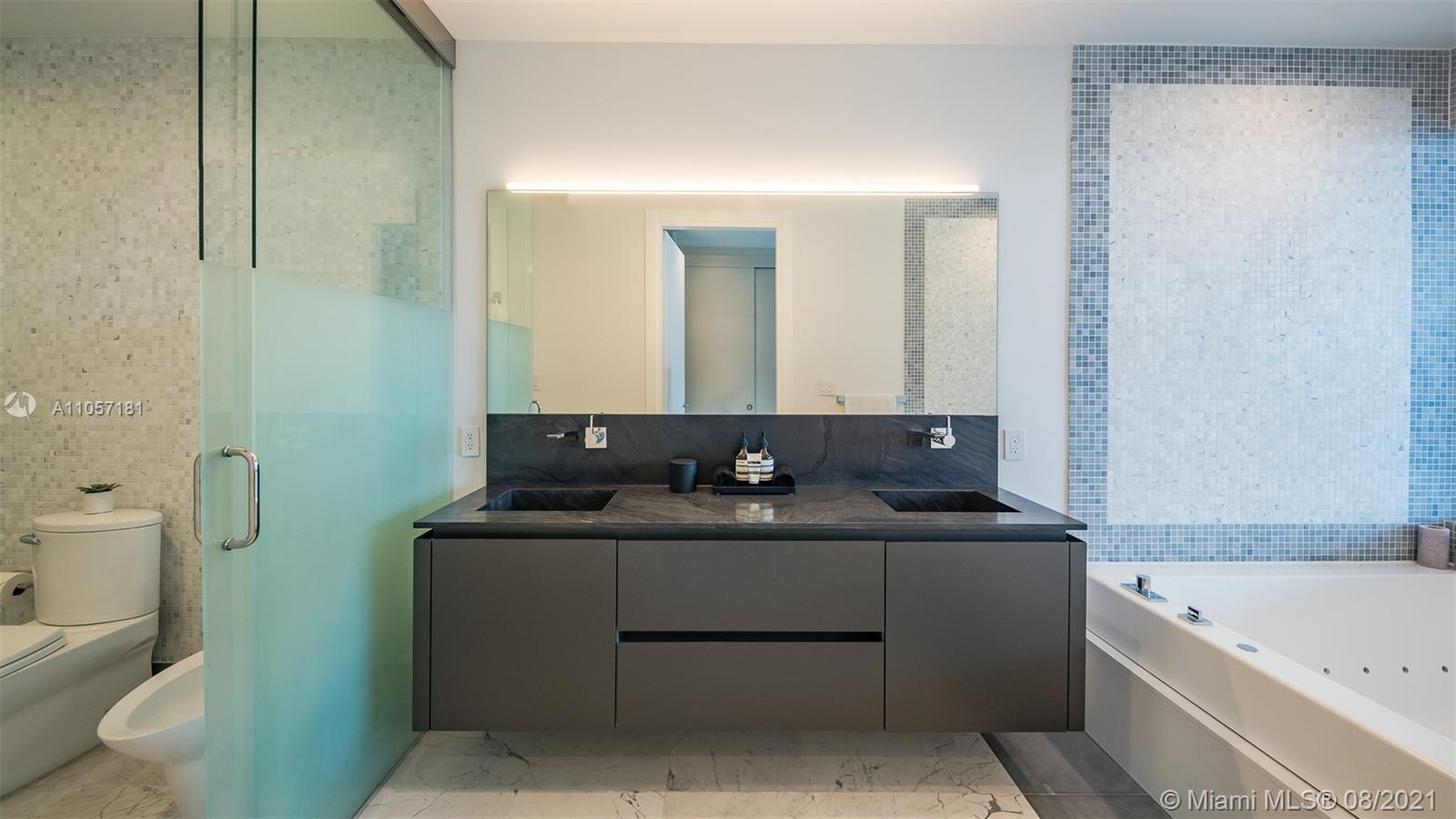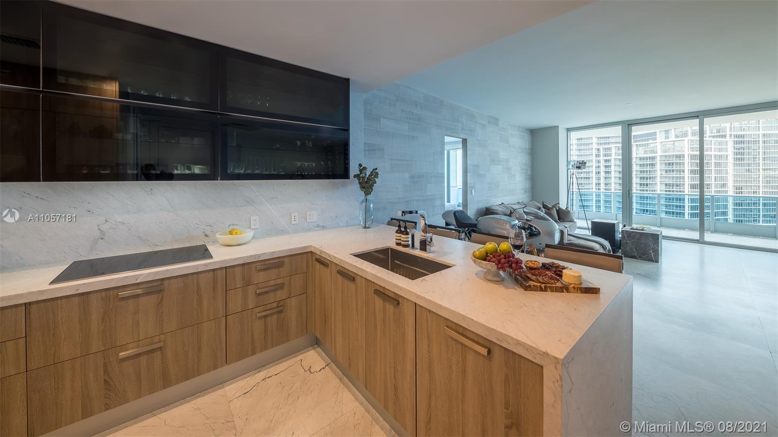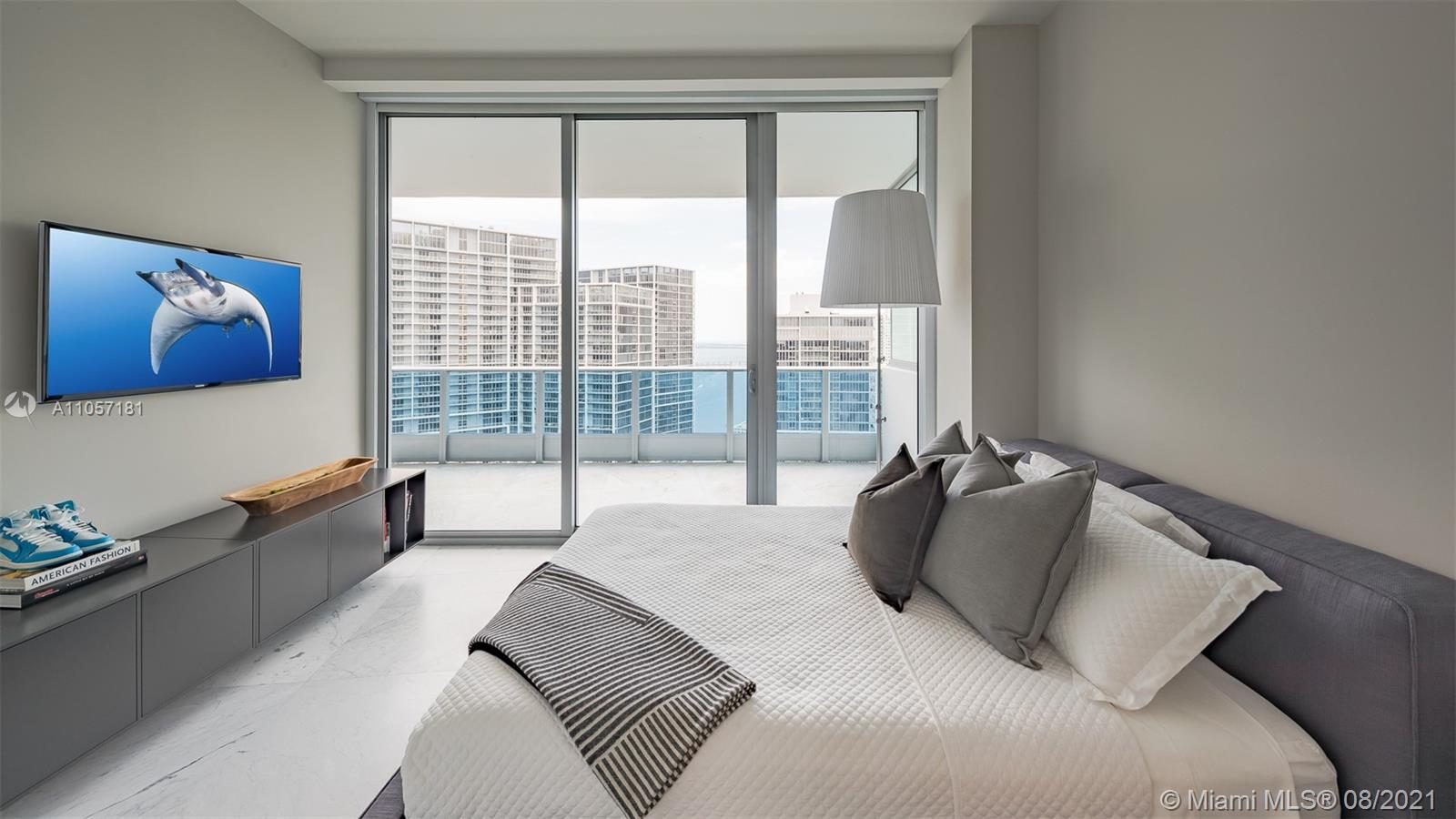 Very special and sophisticated 2 BD/2.5 BA with open water views has been customized beyond your expectations. Located on 51st floor and turnkey with a custom wine wall storage in den, tastefully upgraded with oversized 36" Italian Carrara floors, Pierro Lissoni designed Salvatori stone walls, Snaidero kitchen with Subzero & Miele appliances. New upgrades include a double vanity in the master bathroom, Creston Automated Smart Home System, Smart Lighting & A/C Control. The Epic is located at the epicenter of Brickell world-class shopping, dining and the best entertainment the city has to offer. The apartment is situated on the highly desirable '04' line with tall unobstructed water and skyline panoramas of Miami. Epic living means enjoying on-site first-class dining, SPA and amenities.