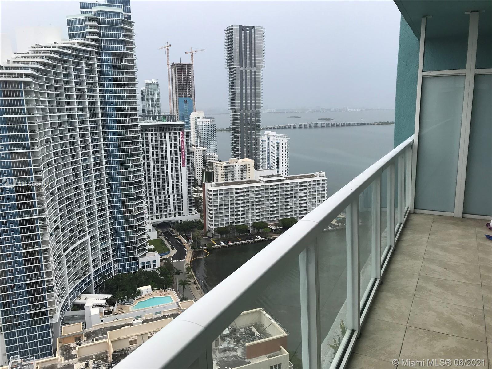 Amazing view 1bedroom plus large den 2 bathrooms in luxury high-rise with extra large balcony. This 34th floor unit features great day and city views tile floors throughout, Italian kitchen, contemporary bathroom, extra large walk-in closet, washer and dryer in unit. Floorplan could easily be a2 bedroom. Excellent location 19th and Biscayne next to Margate Park and the Bay And the Venetian causeway,Publix, American Airlines Arena, Bayside, banks, dining, performance art center, public transportation metro rail, 5 min to I 95 3 minutes wynwood,15 minutes to south beach 5 minutes to downtown . 5 star amenities which includes 2 story state of the art fitness center, Cybr Caffe, store inside building, pool tables, customer lounge, movie theater room 24 hour security,And package room