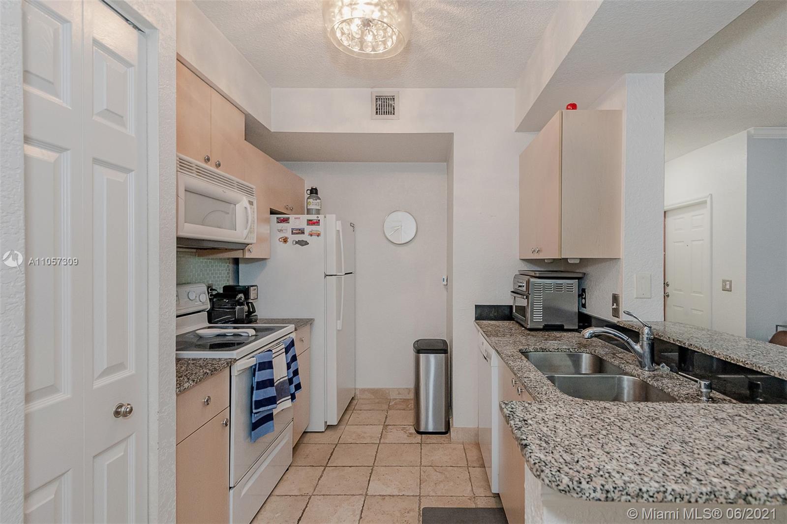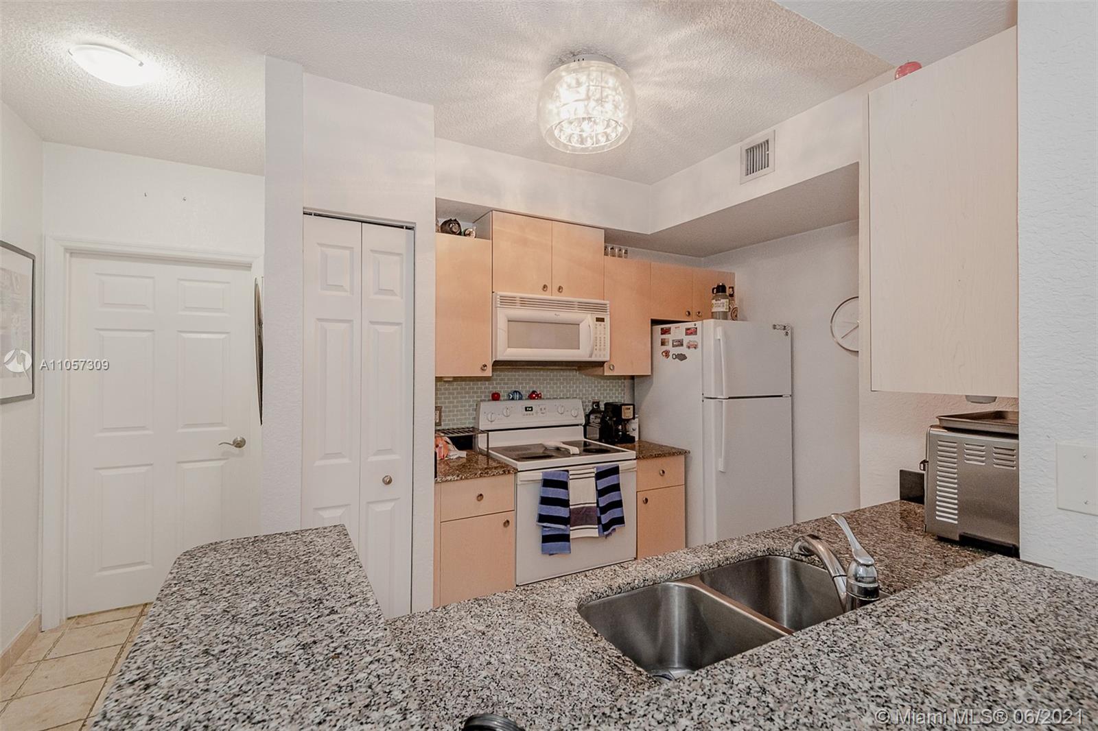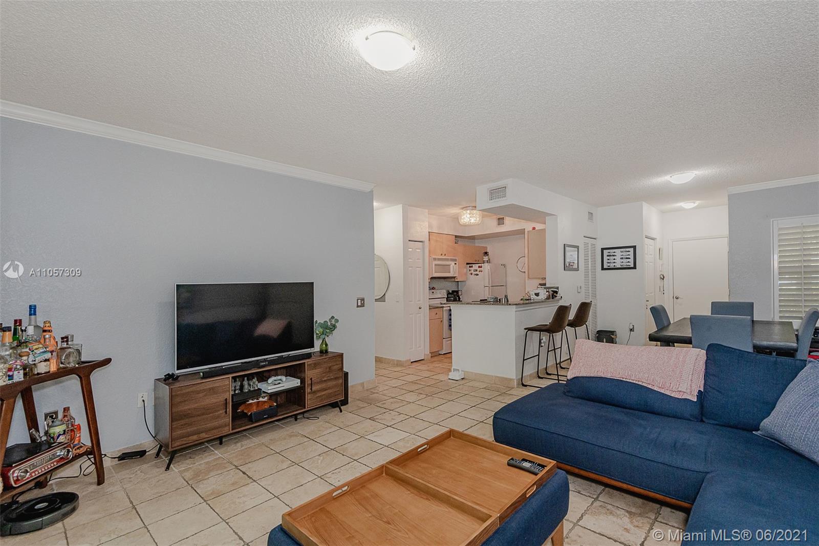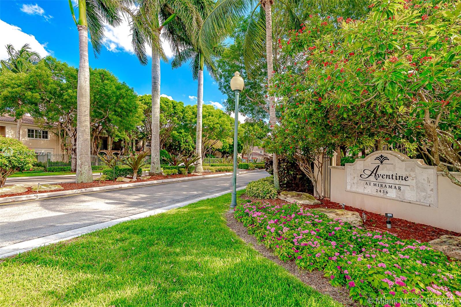 Best location Condo in Aventine, with covered 1 car garage, 1BR 1Bath. First floor layout. Ready to move. Windows treatment Plantation shutters, crown molding, tinted windows, upgraded kitchen counter. Most desirable area in Miramar, minutes away to Miami Int and Fort Lauderdale airports. Tile throughout. Spacious living area. Washer and dryer in unit. Walk-in closet. Resort style amenities; community pools, gym, tennis courts, playground, jogging and biking trail, around the magnificent lake. No restrictions on rentals. Tenant occupied. Showings on Wednesdays only by appointment.