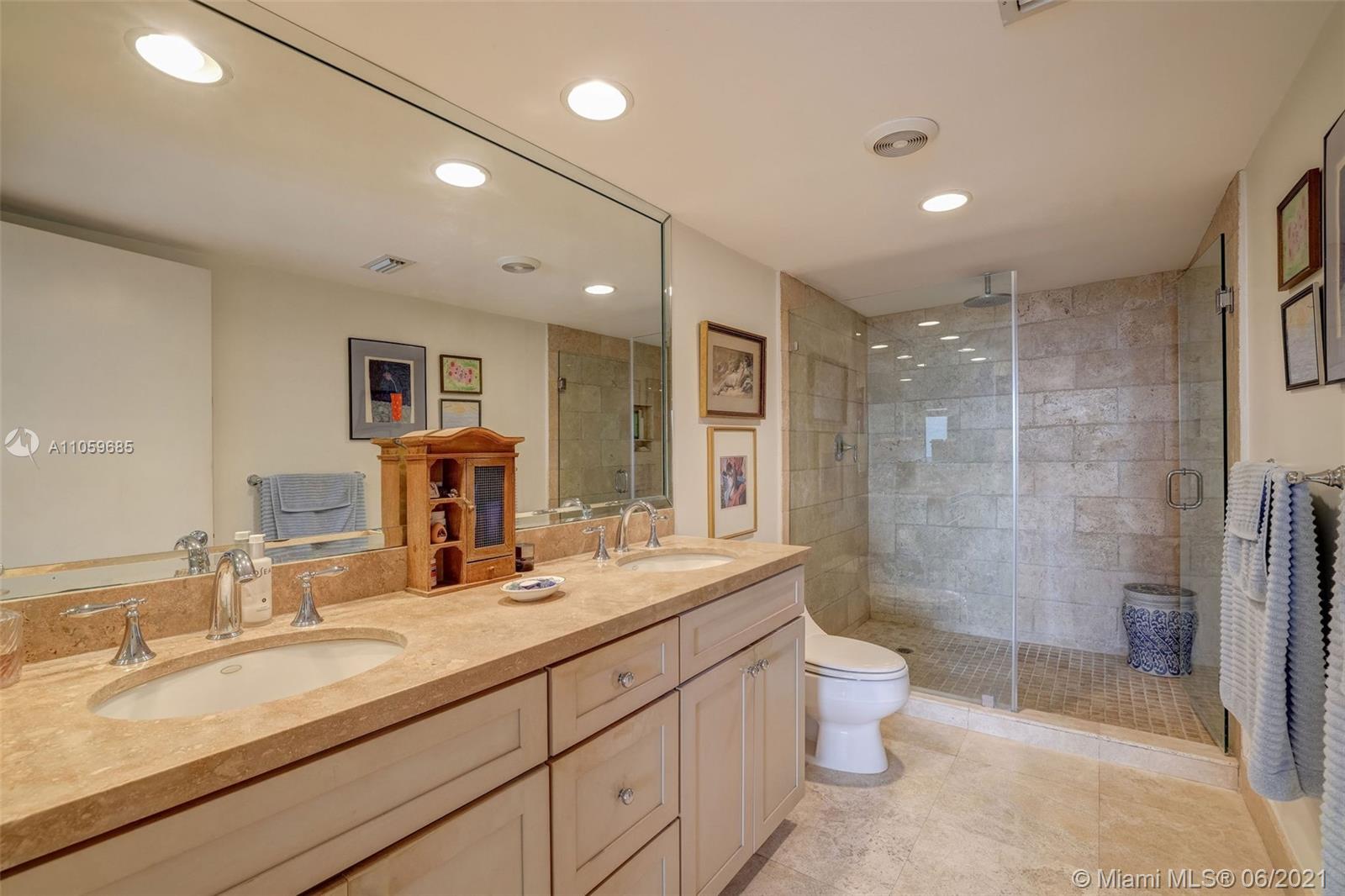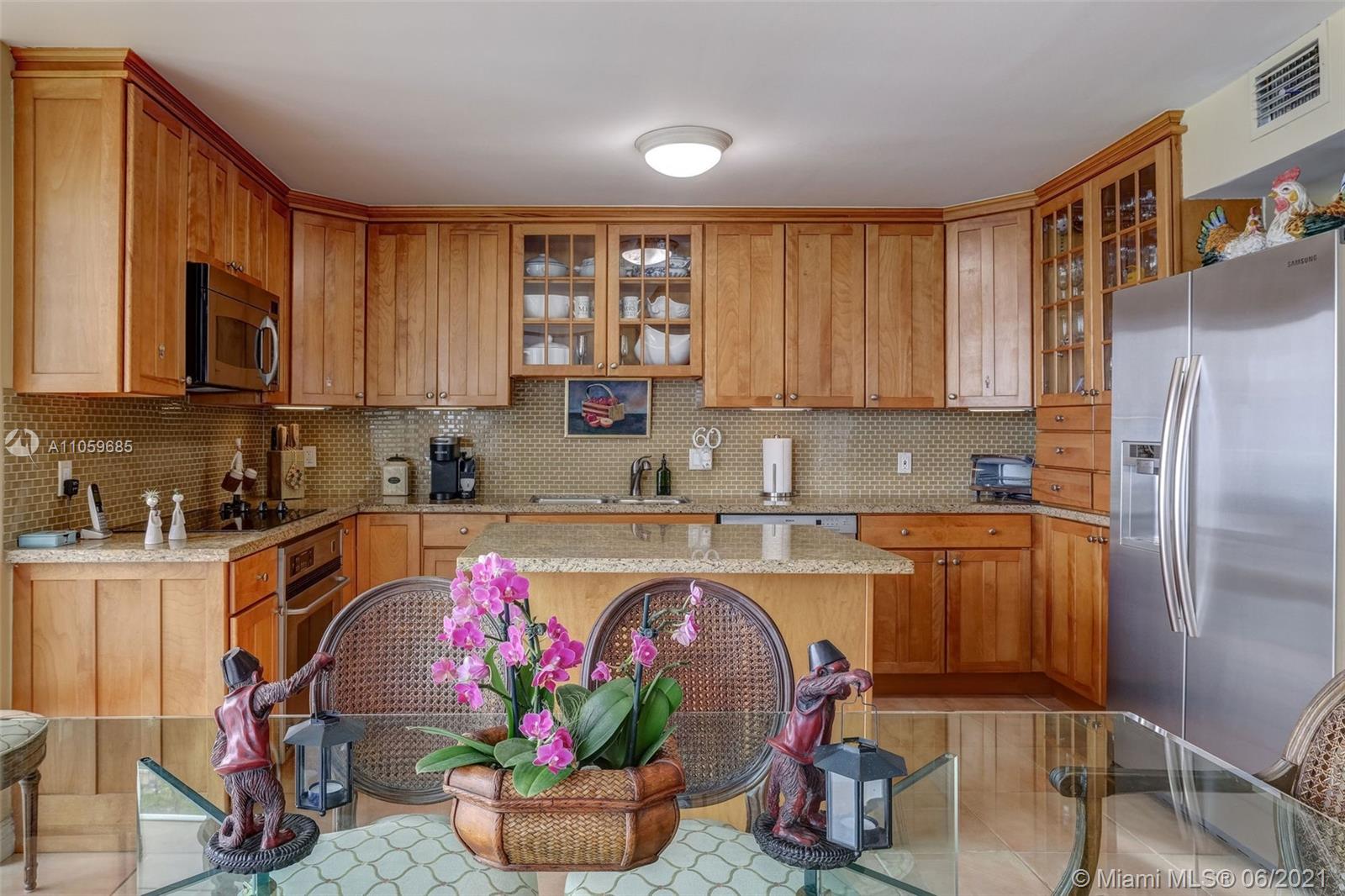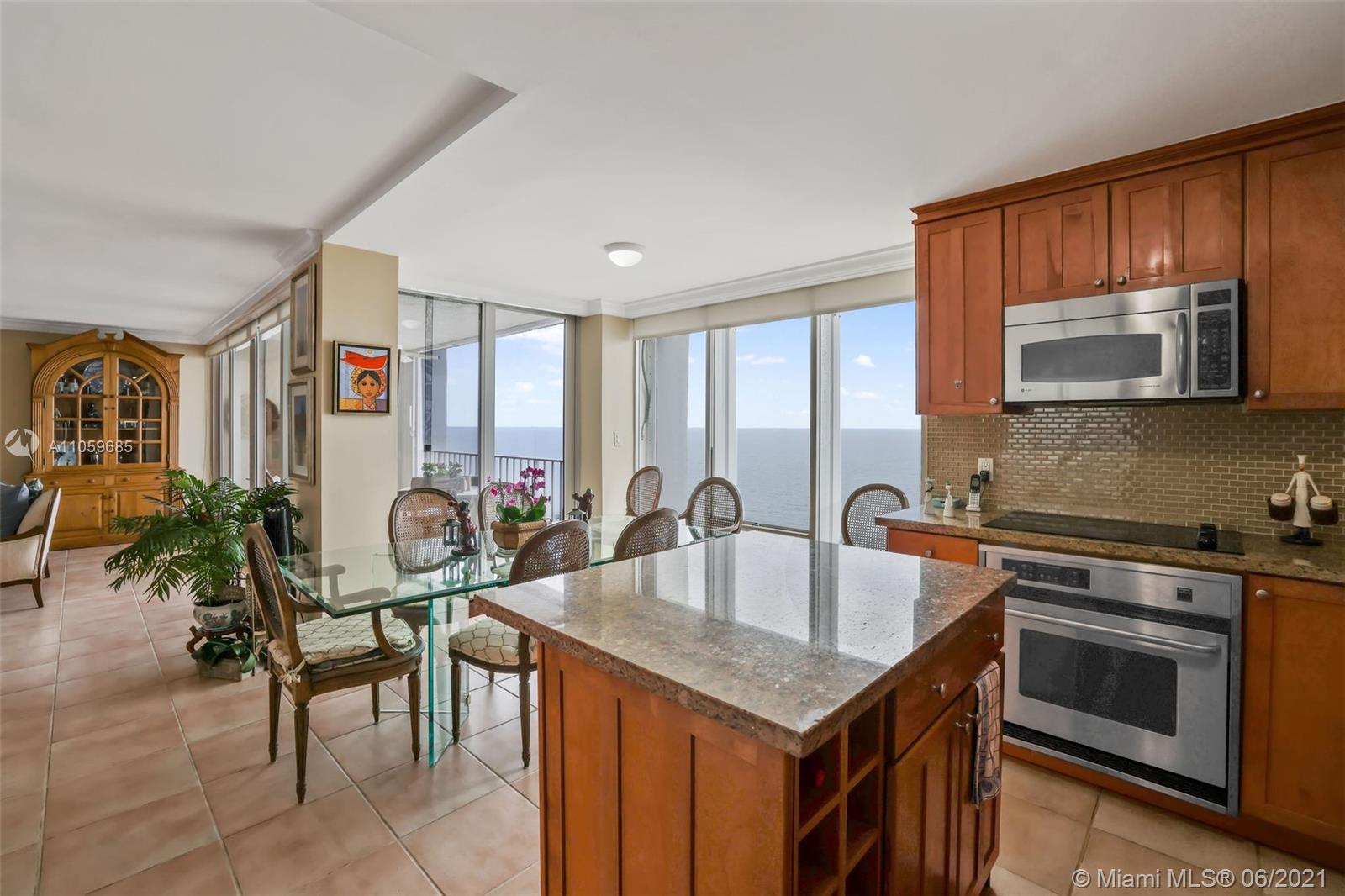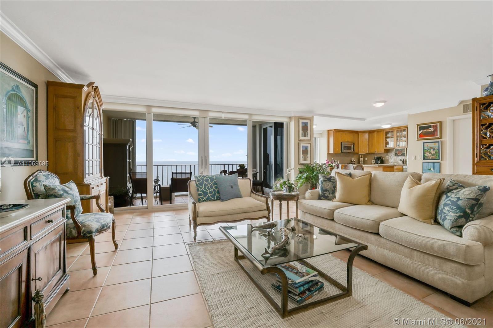WATER, WATER, WATER AS FAR AS THE EYE CAN SEE! PANORAMIC OCEAN VIEW FROM THIS IMPECCABLE HIGH-FLOOR KEY BISCAYNE HOME IN THE SKY! MAGAZINE-PERFECT RENOVATION OF THIS LARGE 2 BDRM/2BATH RETREAT+EXTRA DEN! TILE FLOORS IN SOCIAL AREAS, SUPERIOR QUALITY CARPETING IN BEDROOMS & DEN; KITCHEN W/GRANITE COUNTERS, SEPARATE ISLAND & TOP-DRAWER APPLIANCES. LIV & DIN AREAS OPEN TO COVERED TERRACE OVERLOOKING OCEAN. BEDROOMS PROVIDE GENEROUS STORAGE W/BUILT-IN WARDROBES & OFFER VIEW OF BISCAYNE BAY. MASTER BATH W/MARBLE DUAL SINK VANITY & HUGE SHOWER; GUEST BATH W/MARBLE VANITY & COMBINATION TUB & SHOWER. SEPARATE LAUNDRY ROOM W/TRASH CHUTE. COMPLETE HURRICANE PROTECTION PROVIDED BY A COMBINATION OF IMPACT GLASS, ROLLADEN & ACCORDIAN SHUTTERS, INCLUDING PATIO. COVERED PKG; GATED W/24-HR SECURITY.