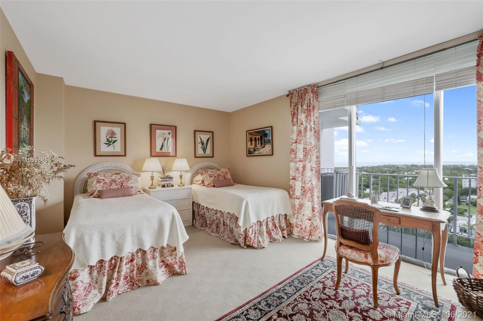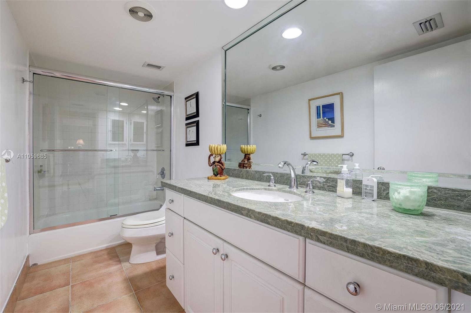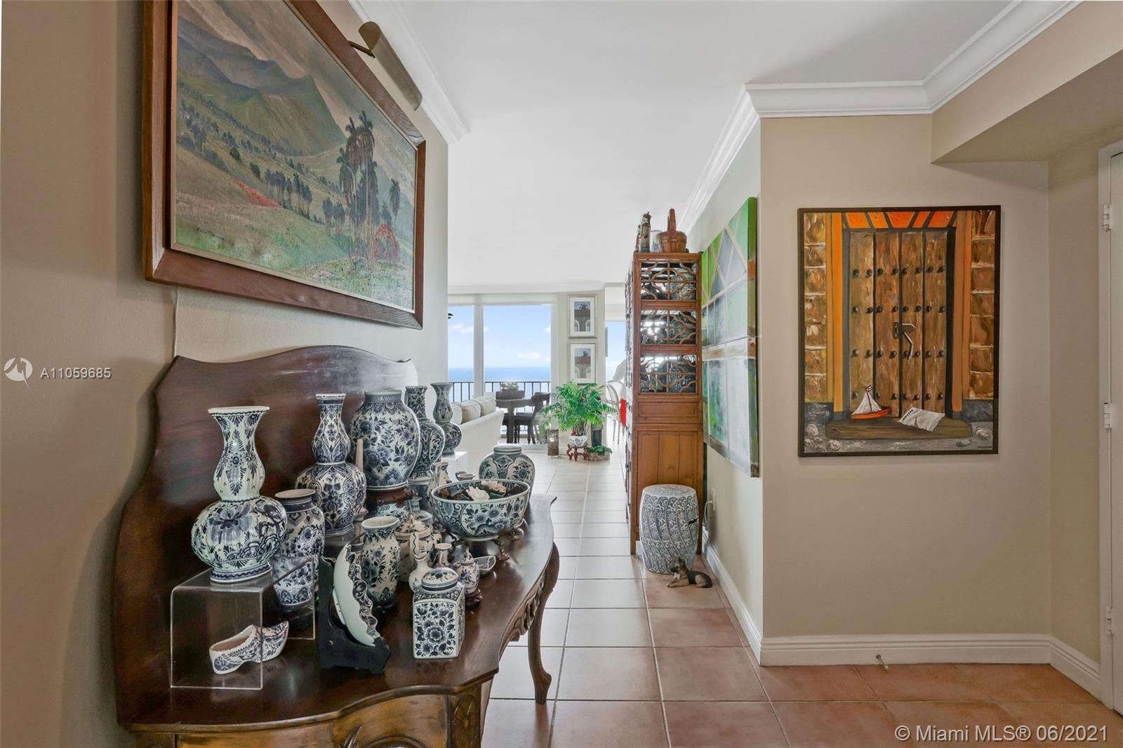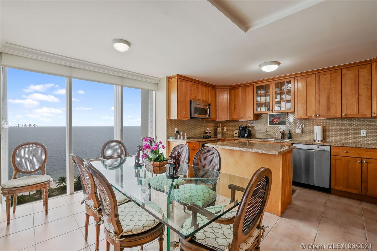 WATER, WATER, WATER AS FAR AS THE EYE CAN SEE! PANORAMIC OCEAN VIEW FROM THIS IMPECCABLE HIGH-FLOOR KEY BISCAYNE HOME IN THE SKY! MAGAZINE-PERFECT RENOVATION OF THIS LARGE 2 BDRM/2BATH RETREAT+EXTRA DEN! TILE FLOORS IN SOCIAL AREAS, SUPERIOR QUALITY CARPETING IN BEDROOMS & DEN; KITCHEN W/GRANITE COUNTERS, SEPARATE ISLAND & TOP-DRAWER APPLIANCES. LIV & DIN AREAS OPEN TO COVERED TERRACE OVERLOOKING OCEAN. BEDROOMS PROVIDE GENEROUS STORAGE W/BUILT-IN WARDROBES & OFFER VIEW OF BISCAYNE BAY. MASTER BATH W/MARBLE DUAL SINK VANITY & HUGE SHOWER; GUEST BATH W/MARBLE VANITY & COMBINATION TUB & SHOWER. SEPARATE LAUNDRY ROOM W/TRASH CHUTE. COMPLETE HURRICANE PROTECTION PROVIDED BY A COMBINATION OF IMPACT GLASS, ROLLADEN & ACCORDIAN SHUTTERS, INCLUDING PATIO. COVERED PKG; GATED W/24-HR SECURITY.