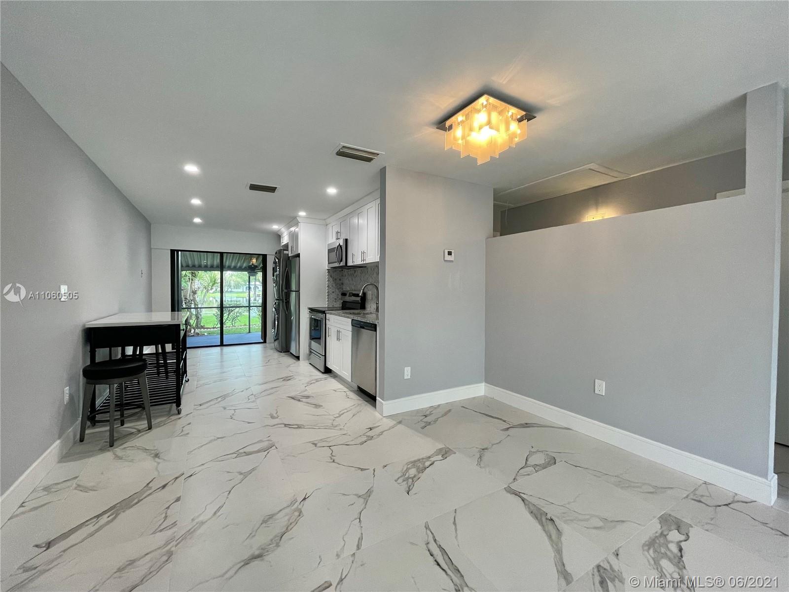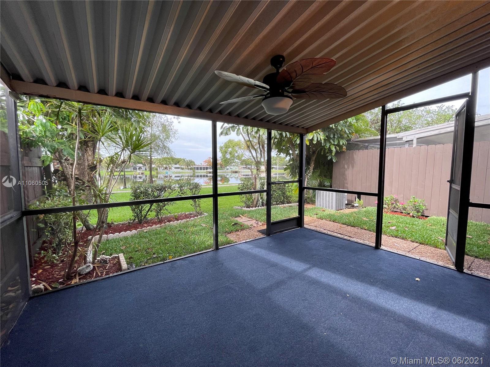 Walk in to this cozy and newly renovated 2 bed, 2 bathroom townhome featuring all brand new appliances, bathrooms, water heater, porcelain tile floors as well as a new front door. Plenty of outdoor space with both a covered and full screened in area, as well as open air patio space. An incredibly peaceful neighborhood with relaxing lake views and lush trees. Storm protection includes impact windows in the front of the home and a combination of accordion and panel shutters throughout the rest of the windows. Located in an A-Rated school district and just minutes from the Pembroke Lakes mall and grocery stores. A wonderful opportunity for both individuals and families.