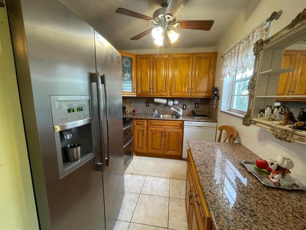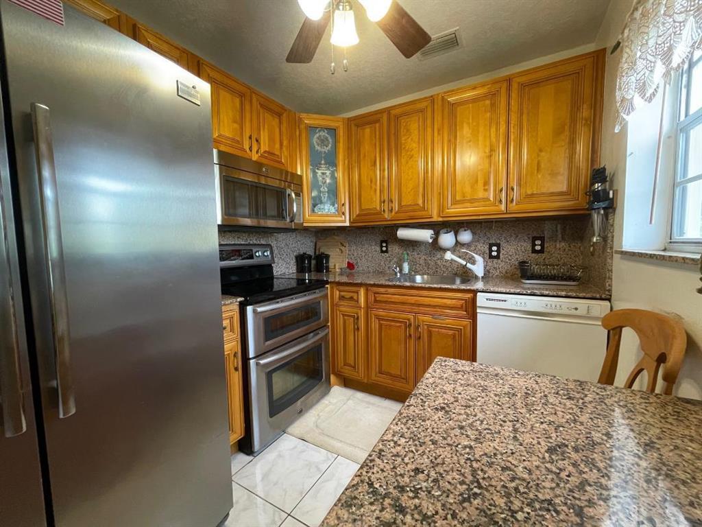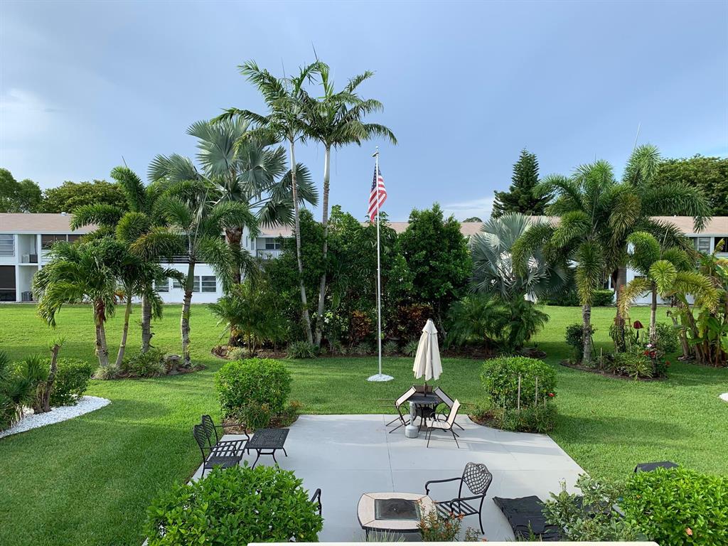 Lovely & elegant CORNER unit in wonderful pet friendly building! Updated kitchen with granite counters and stainless steel appliances. Updated baths. Neutral tile floors throughout. Long enclosed lanai with tile floors & peaceful green views! Beautiful lushly landscaped private patio area for building residents. Building allows one cat or one dog 15 lbs or less. Tucked away yet close to everything - Club House, House of Worship, and Hastings Fitness Center & Pool. Sold furnished (excluding the blue/green bedroom set).A splendid spot to call home!