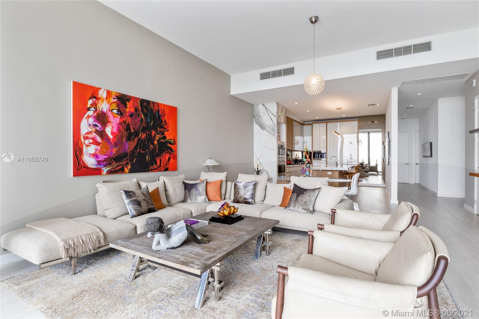Beautiful TURNKEY residence 9C, Spacious flow through layout with 3 beds, 2.5 baths, 314 sf terrace with direct views of the bay. Professionally decorated in neutral tones with timeless and elegant design, this pristine unit will check out everything on your list! Expansive 12 ft. Ceilings, private elevator with foyer, italkraft kitchen with sub-zero and wolf appliances. Large, keyed, storage locker (5.4’ W x 2.2’ D x 12’ H) built in the service area exclusively for owner’s private use and a full size wine refrigerator. Luxurious amenities designed by Meyer Davis: elegant lobby,3 pools ,gym-spa, billiard room, private screening room, media rooms, library, lounge area, landscaping by acclaimed designer Enzo Enea. Spectacular art throughout available upon request.