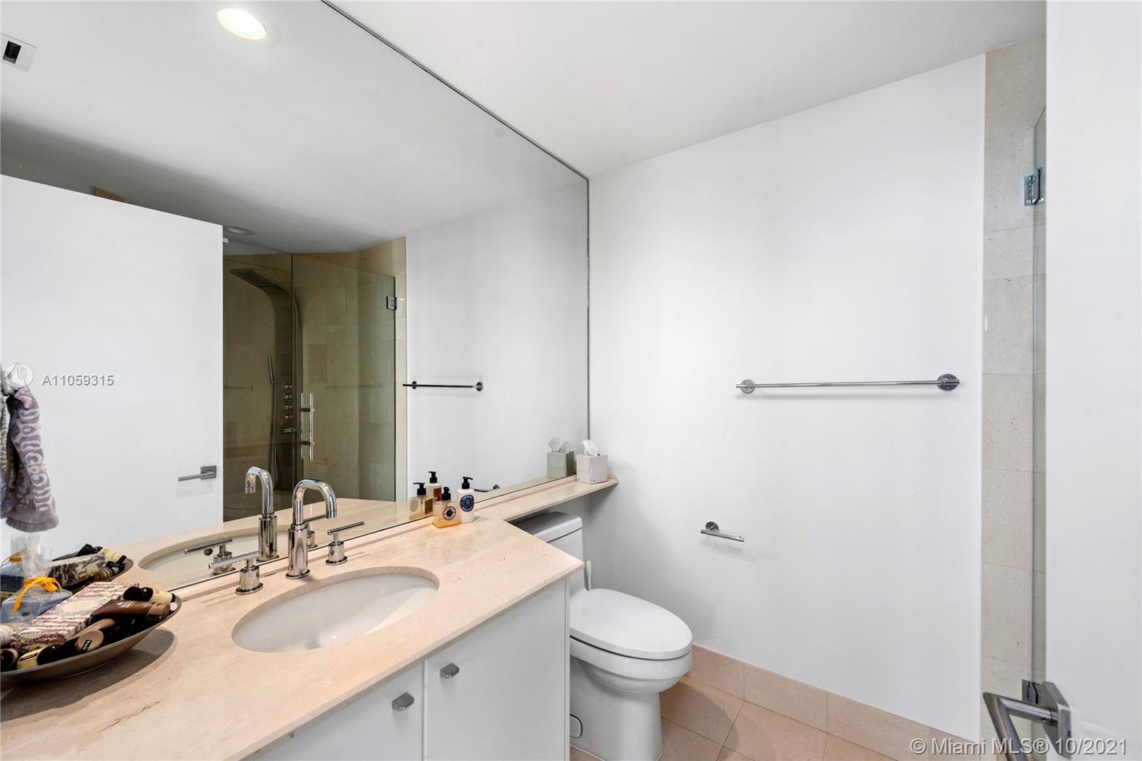 Welcome to your home in the sky. Impressively renovated. This 2 bed/2.5 bath residence has a separate den/office area as well as sunrise and sunset balconies. High ceilings/floor to ceiling glass make this unit light and bright with spectacular views from every room. It features direct beach and ocean views from living room, den and 2nd bedroom. Spectacular city views from the dining room, kitchen, and main bedroom. Kitchen redesigned with Island seating, new custom cabinets, all soft close drawers that maximize storage, Quartz countertops, high-end built-in appliances that include a Wolf steam oven and Induction cooktop. Floors are 40inch Italian porcelain w/white washed wood floors in bedrooms. Built-in closets, pocket doors, new lighting and electronic blinds. Ready to move in today!