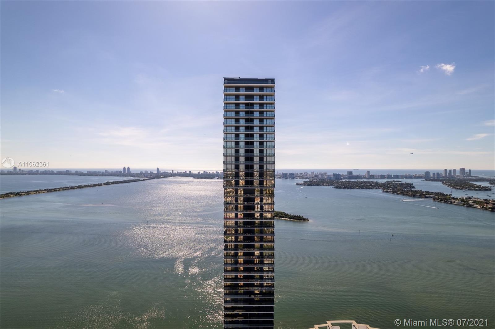 Edgewater’s most exclusive boutique development. 100 Residences with half and full floor flow-through units only! Direct open bayfront NE corner 3 BR + Den/Office with incredible views facing Miami Beach and city views of Edgewater and Wynwood. 10 ft. floor to ceiling glass windows, Wolf gas range and Subzero appliances, porcelain-wood flooring, & private elevator foyer. Lobby, 30th flr. owner’s Sky Lounge and residential common areas designed by renowned designer Jean-Louis Denoit. Other amenities include fitness center, spa, two pools, & five-star concierge services.