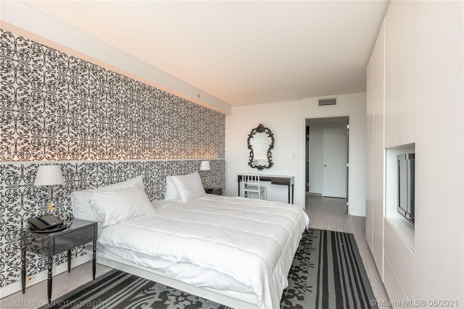 This beautiful 1 Bedroom/ 1 Bathroom residence features a large living room, large bedroom and kitchenette with garden and city views of Miami Beach. The Mondrian is the perfect spot to live or rent out short or long term with resort style amenities including pool, gym and spa. Residence is fully furnished and approved for legal short term rentals. Across street from Whole Foods, Pura Vida and Joe & The Juice.