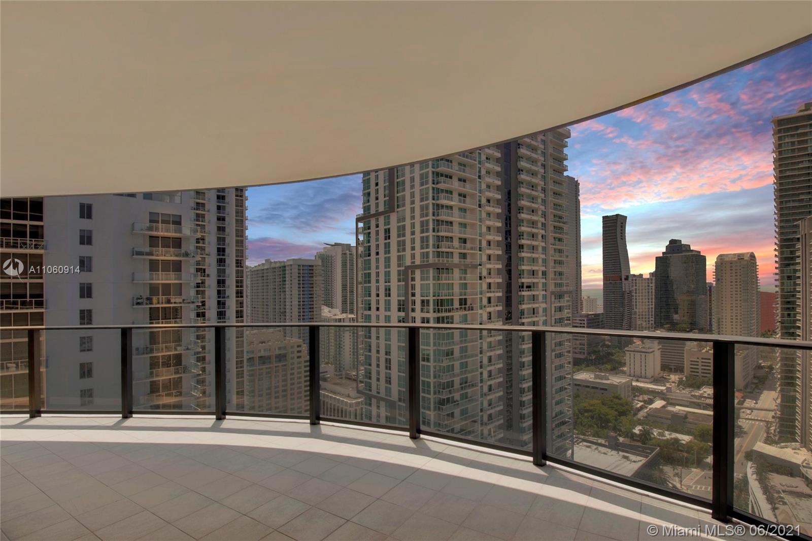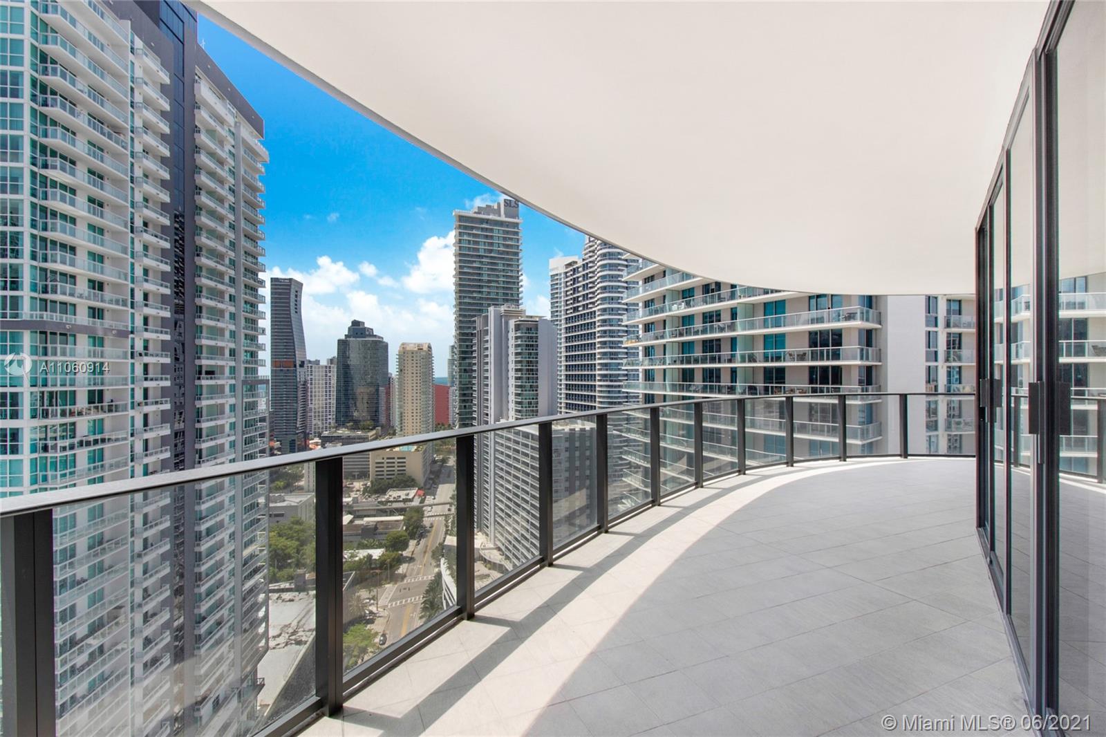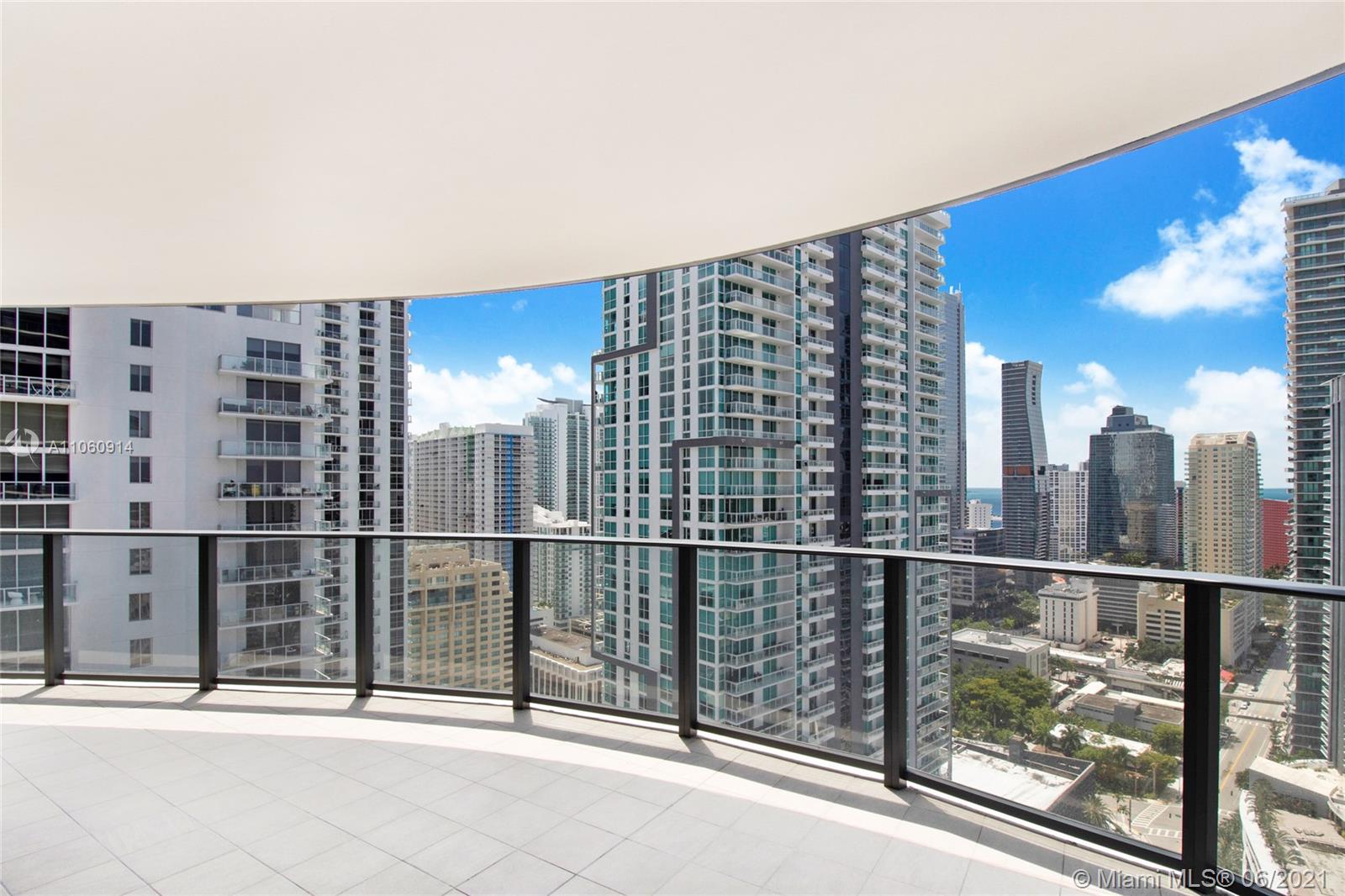 Situated in the heart of downtown Brickell, luxury living and superb location define this 3 BR, 3.5 BA residence. Positioned in best 02 line, this corner apt showcases the largest floor plan of the tower residences @ 2,025 Adj SF, and huge wrap-around balcony delivers lavish sunset, city and distant Bay views. Interior features floor-to-ceiling glass windows, Italian marble, Snaidero kitchen & Miele appliances. Premium perks include rooftop Sky Club on 64th FL, which integrates a pool w/360° unobstructed water & skyline views, a spa & fitness center. Flatiron Club @ 17th & 18th FLs offers movie theater, lap pool, kid's playroom, lounge & billiards room. Full-time doorman, concierge & 24-hr valet. Super location brims w/steps-away shopping, dining, & Brickell City Centre. 3 parking spaces!