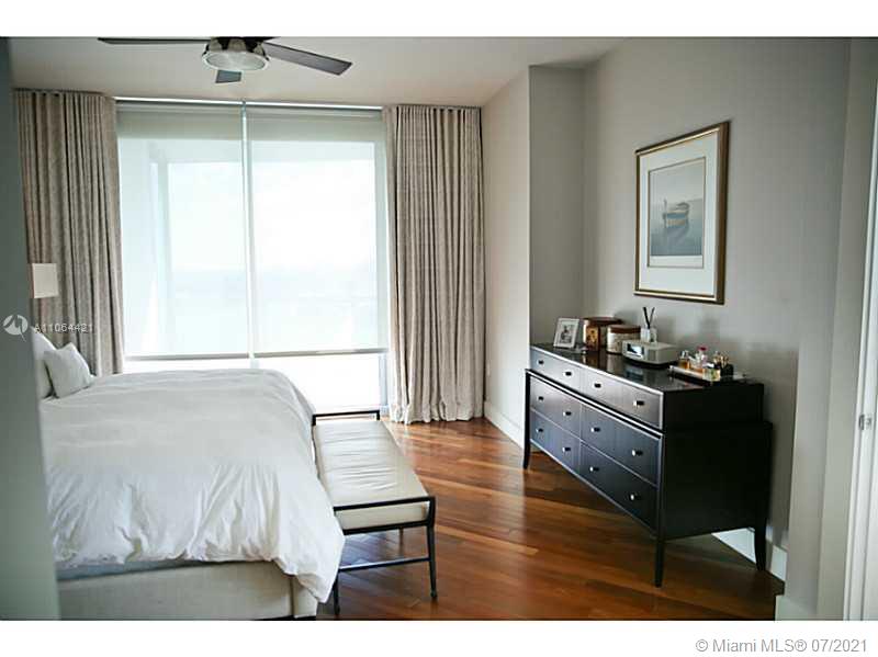 Immaculate 3/3/1 converted into a 2/3/1 to add a private dining experience that can be utilized as a 3rd bedroom if needed. Located on the best line in 900 Biscayne w/ unobstructed Biscayne Bay, Sobe Skyline & City views. Unit features spectacular upgrades including Brazilian Teak Hardwood floors, custom closets, great sized pantry & laundry cabinetry. Custom built-in bar & office desk with LED lighting, wine cooler & polished concrete countertop. Laminated Carrera marble kitchen countertop to protect from damage. Roller shades throughout as well as Blackouts in each of the bedrooms. This unit also comes equipped with its own Private Elevator & Foyer area upon entering. Enjoy top of the line gym, spa, free spinning classes, private Theatre, resident lounge w Wifi, & children's play area!