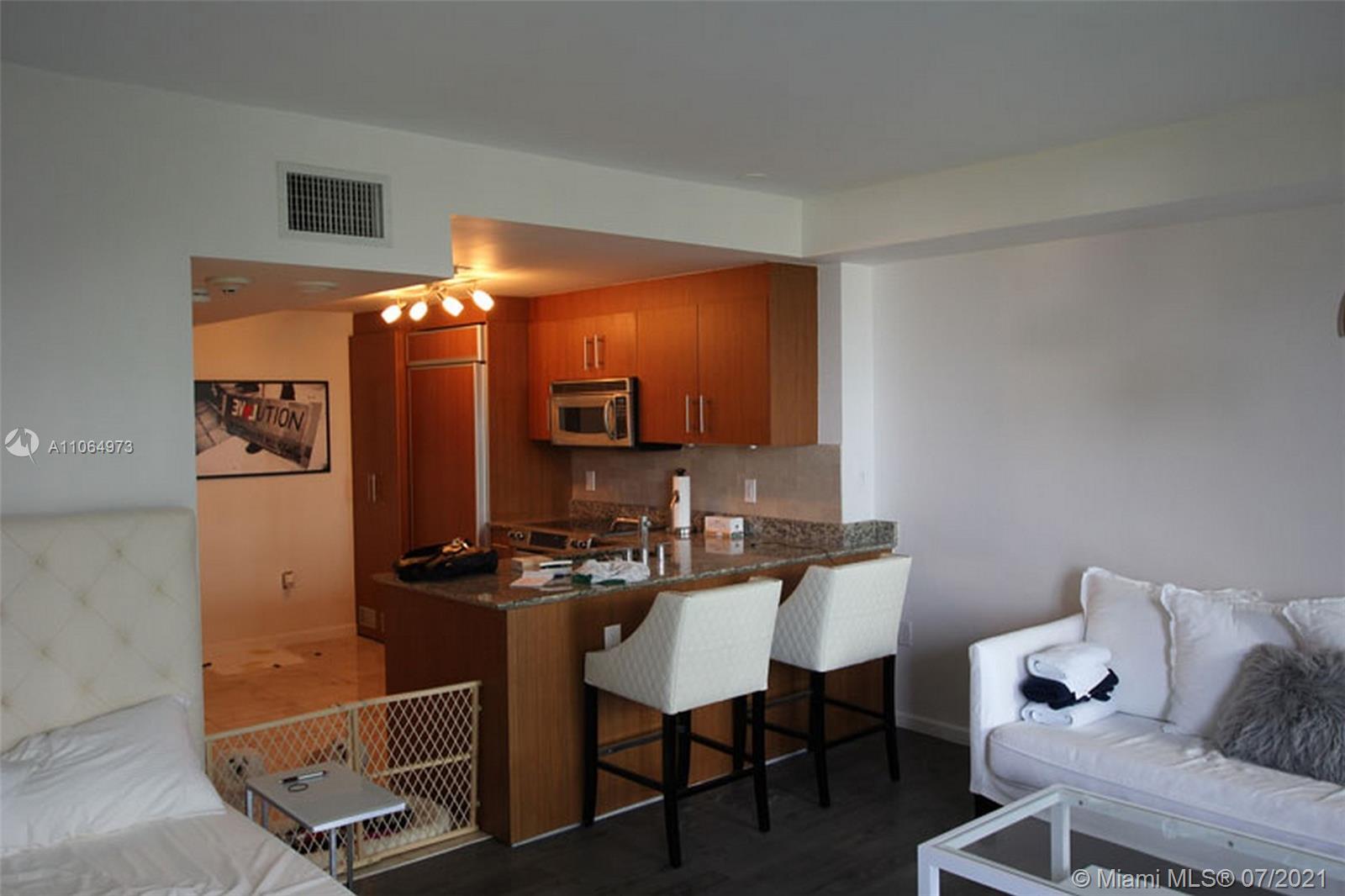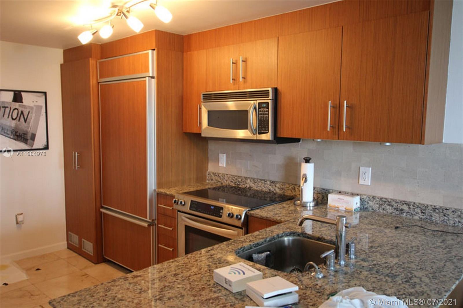 Oceanfront studio, unfurnished and move-in condition with balcony plus garden and ocean view. Euro style kitchen with stainless steel appliances, granite counter-tops, washer and dryer plus covered parking. On the 4th floor (no need for an elevator) in totally updated building in 2008 with huge salt pool, state of the art fitness center and health spa. Building also includes beach service, 24/7 valet, convenience store, restaurant and movie theater.