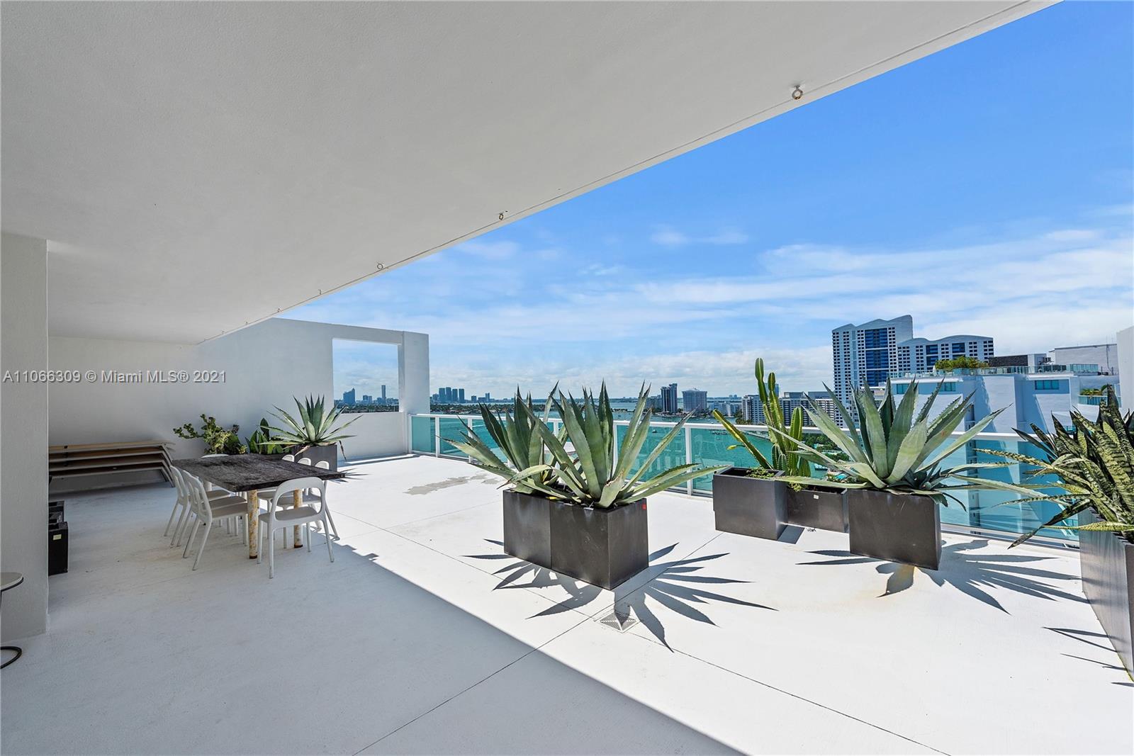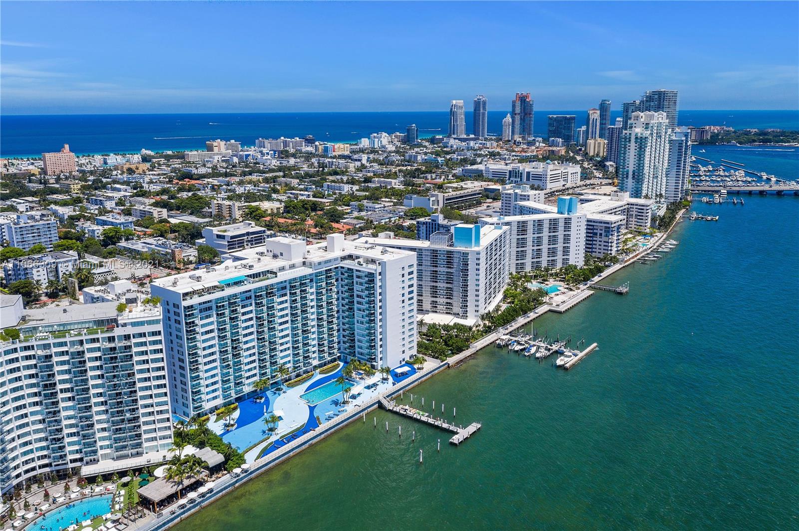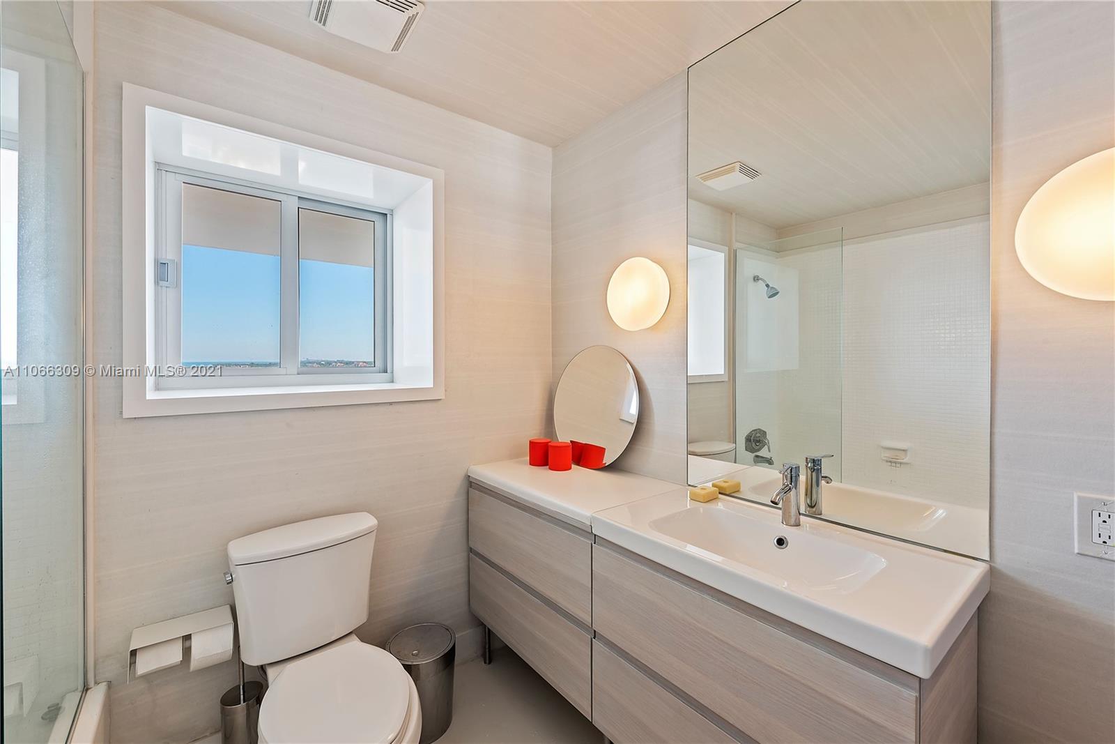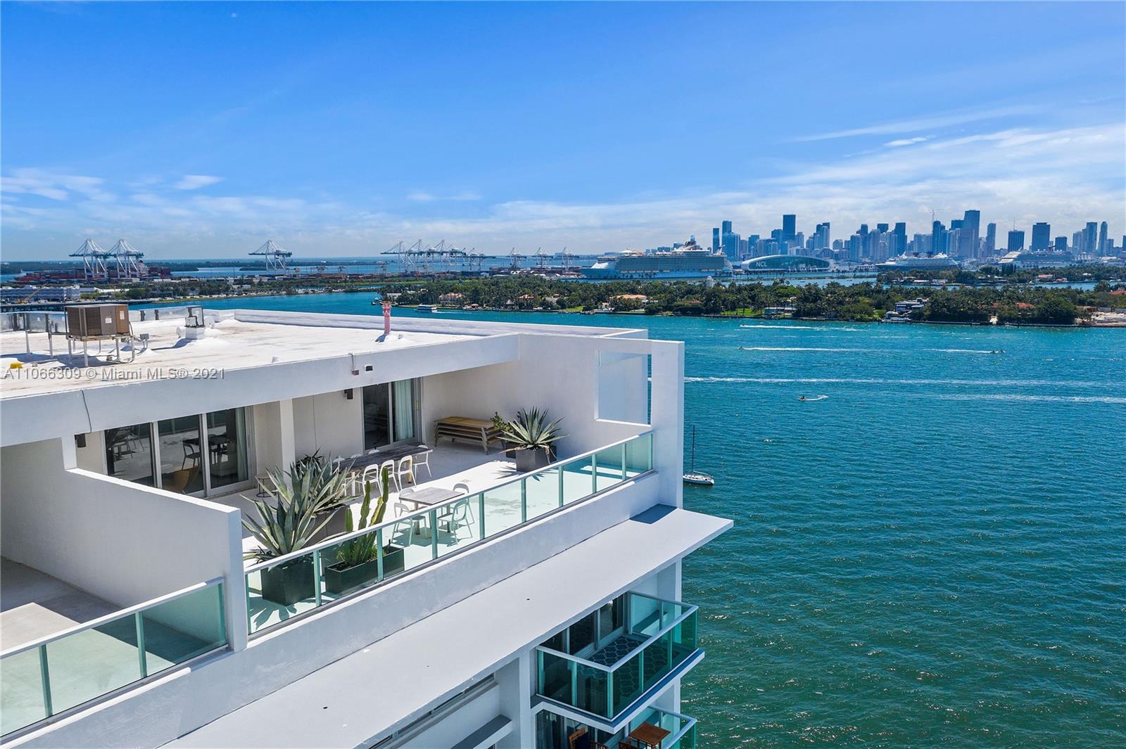 Fabulous Penthouse Tower Suite, TS9 is a unique waterfront residence with an 1100 sf private terrace. Enjoy panoramic NW, Biscayne Bay and Miami Skyline views. Additional outdoor space affords SW views. This spacious, 1,325 sf contemporary 1bd/1.5ba is sleeky designed. Wonderful for entertaining. Or, just relaxing outdoors. Mirador is in a great South Beach location and offers 5,000 sf gym, convenience store, and beautiful pool area.