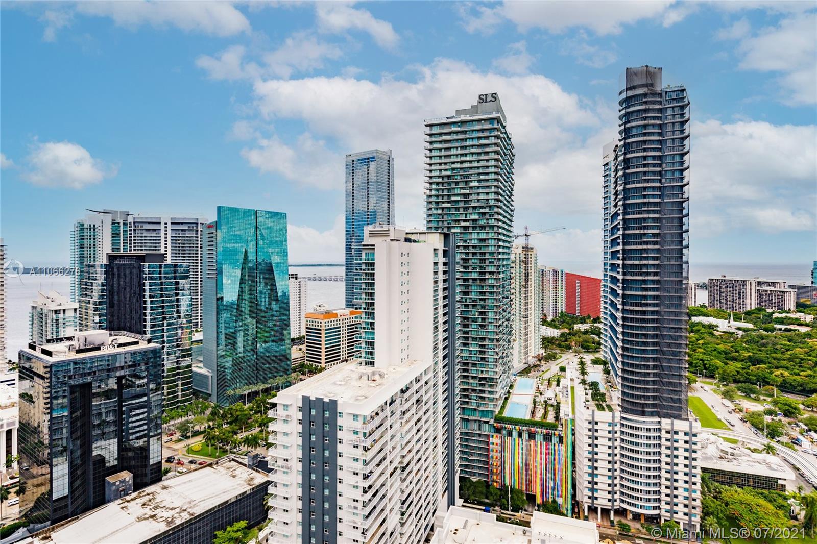 Gorgeous City and Water Views from This Amazing Penthouse! Large spacious 3 Bed with 3 full baths and Big Utility storage in unit. Huge 6 ft deep wrap around balcony that extends to every room. Over 9 ft Floor to ceiling glass windows throughout. Modern wood like tiled floors, roller shades, stainless steel appliances, European Kitchen. Master Bedroom with 2 walk-in closets. All large bedrooms. 2 assigned covered parking spaces (tandem). Best Price per sq ft in modern building in Brickell! Luxury building Featuring Fitness center ,Spa, lap and infinity edge pools, Kids clubroom, Business center, BBQ area and more. Across from people and metro rail. Walk to Mary Brickell Village, Brickell City Center and Brickell Financial area.
