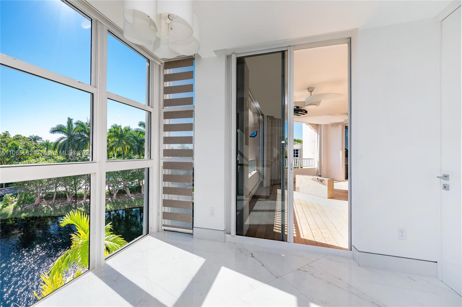 Masterpiece with pure luxury; caring all details in this stunning Versace-style property. All unique and sleek remodeled with high-end materials hand-chosen in Italy and Europe. Exquisite walls of onyx with stunning internal illumination, giving you unparalleled elegance and excellence in this impressive property. Gorgeous flooring, and wood details add distinctive touches at every turn. The kitchen features Miele appliances, custom cabinetry. A private elevator leads you into your exclusive foyer, leading to a modern open space with a breathtaking water view. Unique custom-built family/media area with a mobile TV, offering great entertaining and fantastic family time. A distinctive retractible Tv-System coming from the roof optimizes all space in the cozy master bedroom. You must see it.