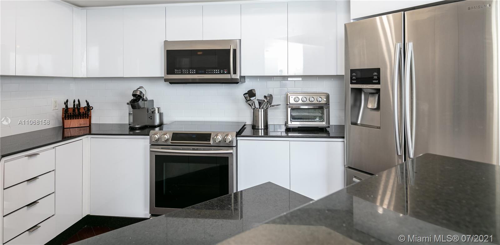 Amazing value for spacious unit with Ocean, Miami skyline & Intracoastal 39th-floor views. Highly desirable 01 line featuring 3 private balconies, split bedroom floor plan & den. Updated throughout with high-end doors and finishes. Real Wood Flooring. 2 assigned garage parking spaces and a large storage unit. Super low monthly maintenance fee includes full beach & pool service, fitness center, cable & game room. Walking distance to high-end restaurants & shopping. Easy to rent while you're away. Won't Last!