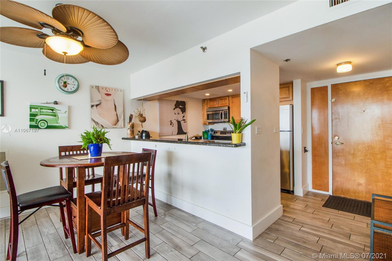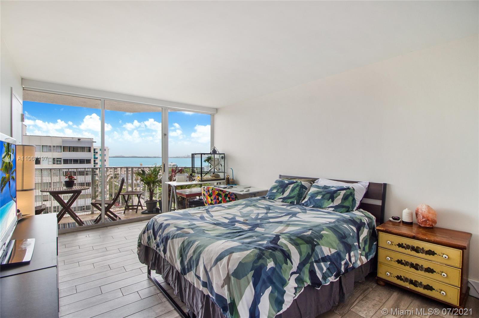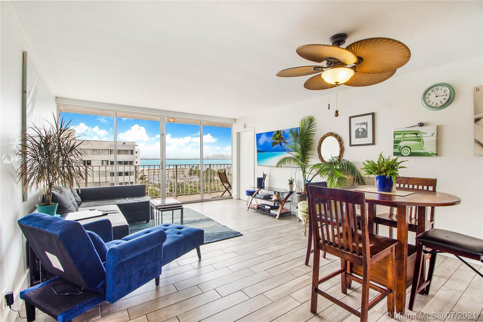 Newly remodeled waterfront 2/2 with many upgrades including all new wood plank porcelain tile floors throughout! Open kitchen w/ granite/stainless appliances, smooth coated ceilings , remote solar shades on all windows. Floor to ceiling sliding doors access this extra large balcony with most desirable southern exposure offering tons of natural light and million dollar unobstructed bay and downtown skyline views! Completely renovated baths w/new tile, vanities, tub & shower. Large primary bedroom w/ spacious walk in closet. W/D in unit. Beautiful island like setting on North Bay Village. Ideal location close to downtown & the beaches. Every amenity here including Marina, Olympic sized pool, gym, 24/7 front desk, mini mart/ restaurants/ retail. This unit includes 2 assigned parking!