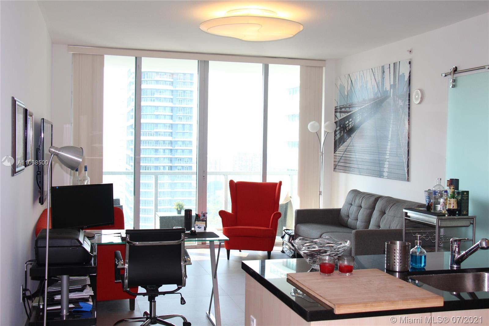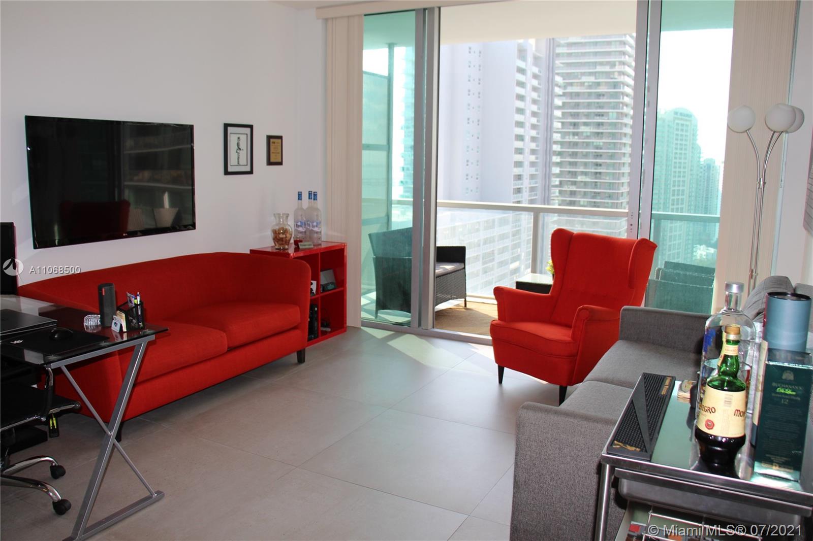 Totally Remodeled and Furnished 1 Bed / 1 Bath at Axis. Beautiful finishes: 36 x 36 imported porcelain tiles, glass door for Master Bedroom, bedroom has been completely modified with a whole wall of closet space. Building full of amenities: 2 pools, gym, valet parking, business center, and more. Amazing location!!!