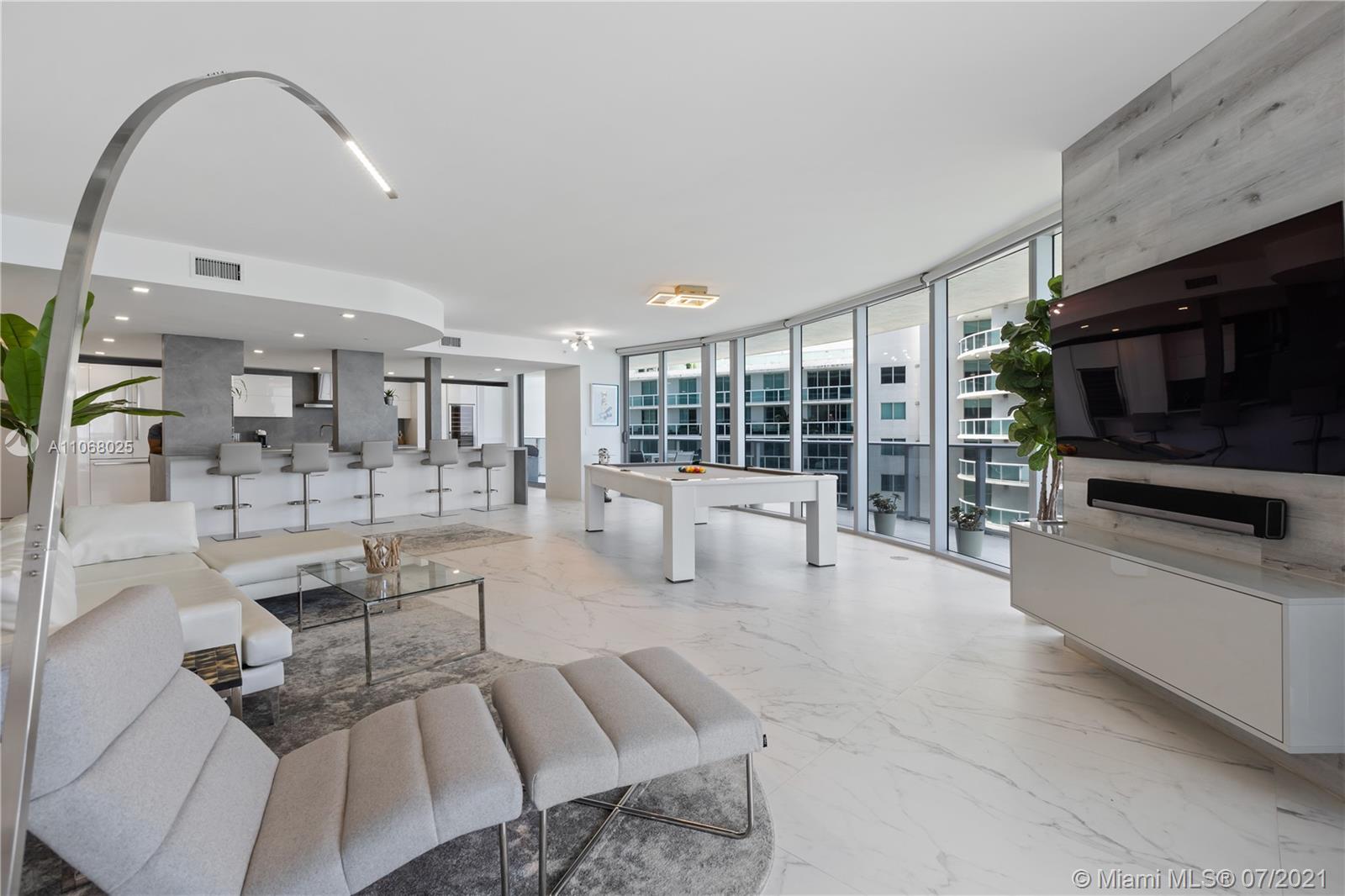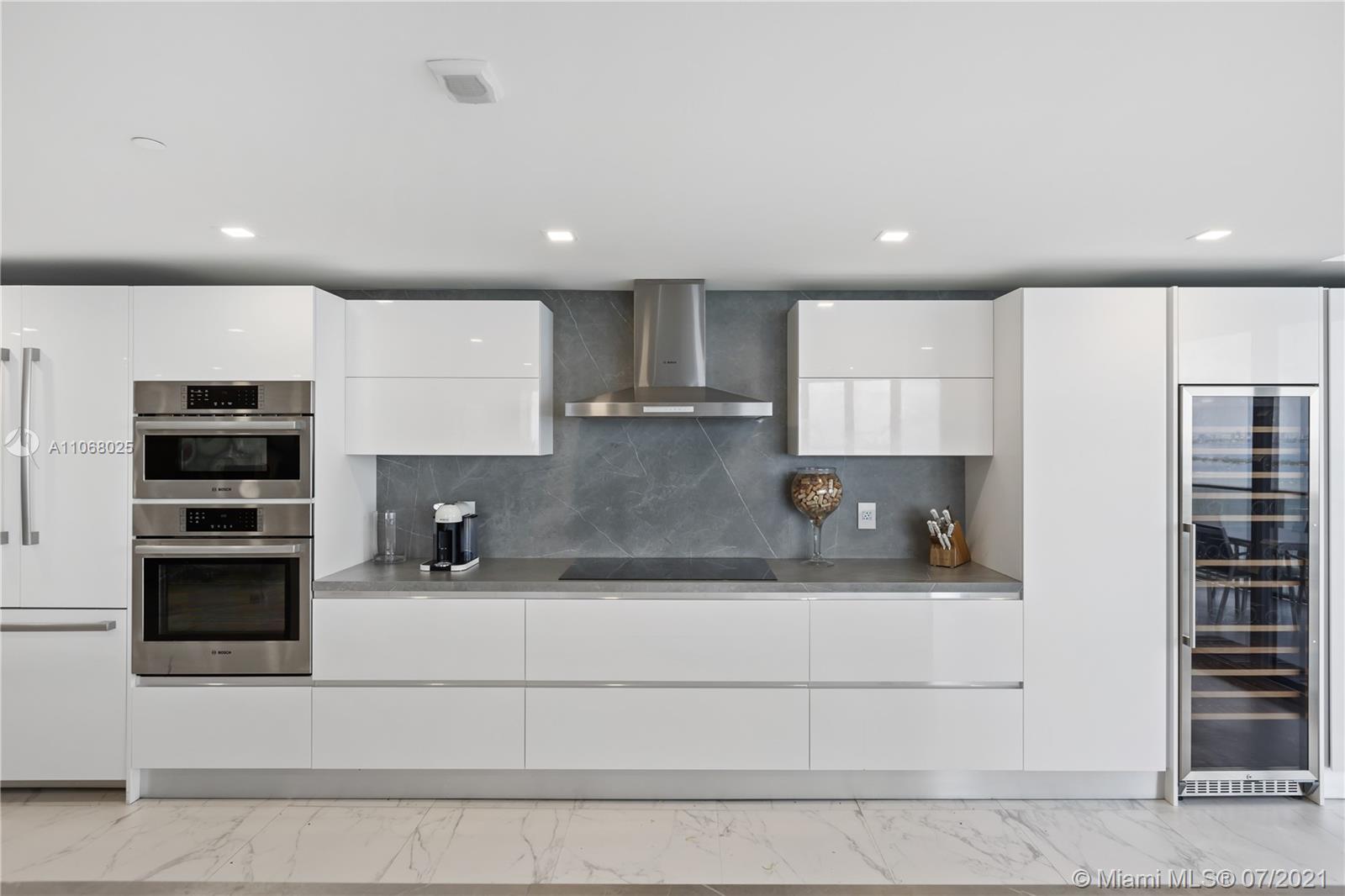 Comprehensive, re-designed to become a true entertainer’s residence unlike any bayfront unit in the building, Aria 3215 brings open modern sophisticated finishes; semi-private elevator & foyer, 46x24 imported porcelain floors, Kitchitalia chef’s kitchen, Bosch appliances & Uline frig drawers, induction stove, 171 bottle wine cellar, pantry, Inalco porcelain countertops and backsplash, 16x5 ft island, 2 en-suites, master suite with his and hers closets, office, powder room, built-in surround system, Legrand lighting, electric shades, laundry rm, 90 degree 600 sf terrace to enjoy Miami’s best views & al fresco dining! Aria built in 2018 w/ unparalleled amenities, 2 pools, hot tub, gym, spa, BBQ area, kid’s room, grand lounge rm, business center, located in the most exciting spot in town!