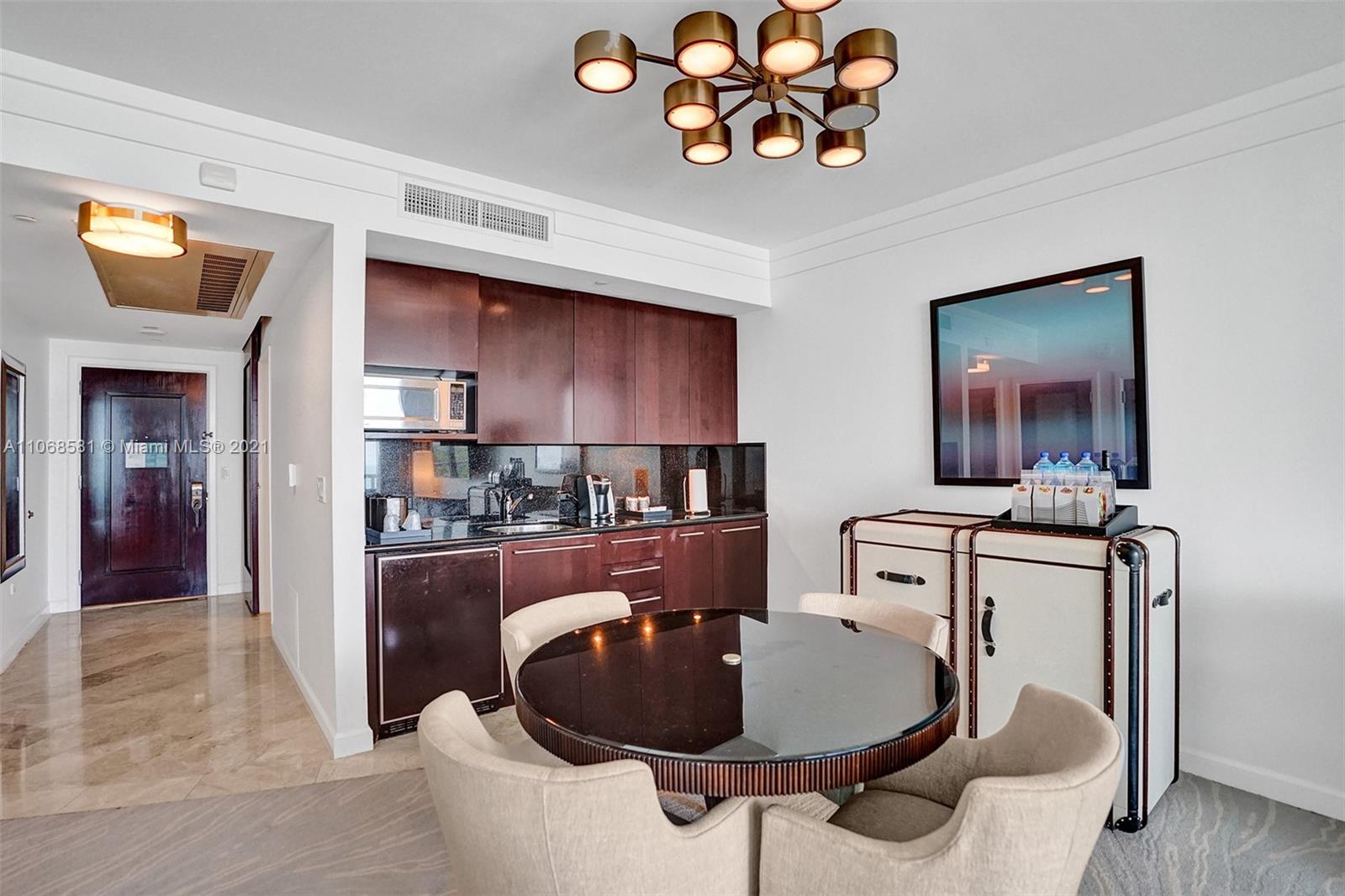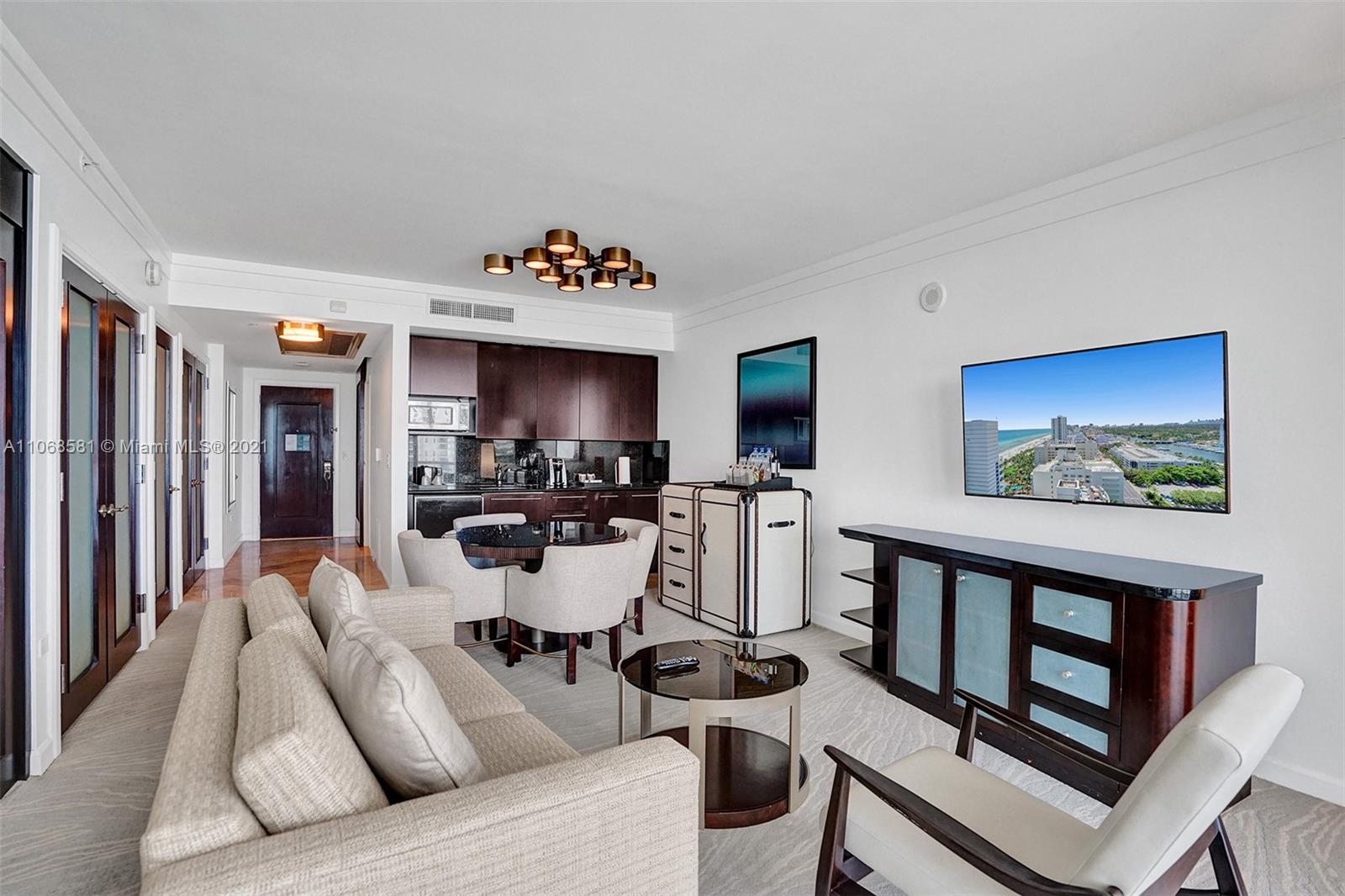 Unique refurbished 802 square foot Jr Suite at The Fontainebleau III with beautiful South facing views of Ocean and city. Enjoy full service, vacation-style living in this fully furnished turnkey unit with 2 double beds, sleeper sofa (sleeps up to 6), marble bathroom & more. Enroll in hotel rental program & receive income while away! The Fontainebleau Resort offers luxury amenities on 22 oceanfront acres including award-winning restaurants, LIV night club, Lapis spa & state-of-the-art fitness center. Maintenance includes: AC, local calls, electricity, valet + daily free breakfast in the owners lounge.