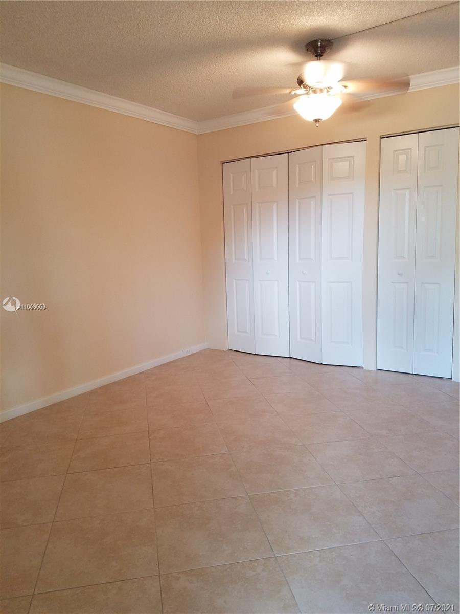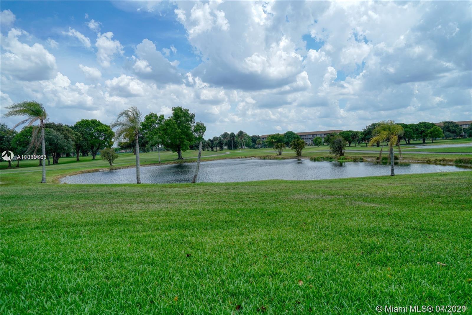 2 bedrooms! Perfect 1st floor unit on the Golf Course in Century Village. Beautiful unit with modern kitchen and freshly painted, tile throughout, crown molding, window treatments, walk-in closets, newer A/C compressor & water heater, and screened-in patio on the golf course. Water, sewer, and basic cable service are included with the rent payment. Come live in a world-renowned adult gated secured community featuring pools, activities, lavish clubhouse, clubs, dining, transportation, near shopping, and more .55+ community. First-floor unit. Building with elevator