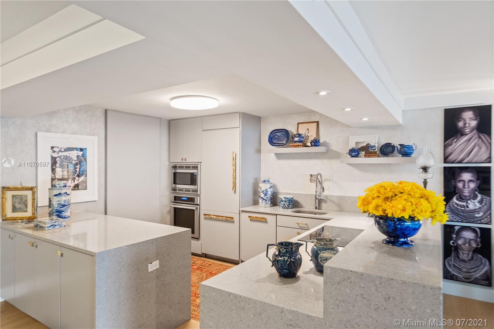 Meticulously renovated waterfront condo in the exclusive community of Grove Isle. No expenses spared on this flawless condo, featuring 2 beds and 2 full baths under 1,882 SF of living space with large hurricane resistant windows and doors to maximize natural light and bay views. New custom designed kitchen with Thermador appliances, new bathrooms including master bathroom with walk-in shower and separate floating tub, double walk-in closets, huge pantry, storage room and large balcony with panoramic water views. Grove Isle is a private and gated community with soon to come newly renovated 8 Har-Tru tennis courts, 3 swimming pools, private beach, marina and social club. It is located minutes away from Downtown Coconut Grove, Brickell and Key Biscayne. This unit is a must see. Move in ready!