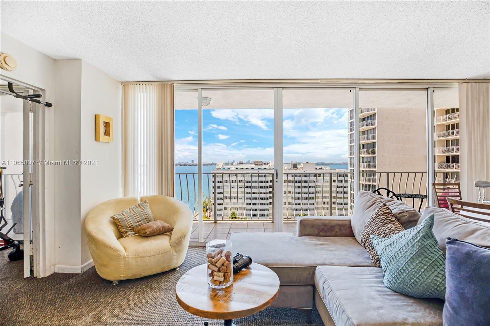 Stunning waterfront condo. Two bedrooms located in the desirable North Bay Village! Enjoy scenic south views of Biscayne Bay and Miami Beach from its vast balcony, accessible from all living areas. This magnificent condo features 2 beds and 2 baths with floor to ceiling glass windows in all areas to enjoy the views from all living areas. The building offers a variety of amenities, including 24-hour security, attended lobby, an Olympic-sized swimming pool, hot tub, gym, restaurants, convenience stores, and a marina. This condo is centrally located within just 5 minutes from Miami Beach, Midtown, and Aventura.