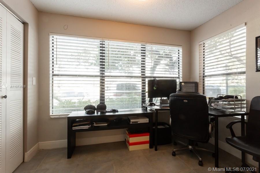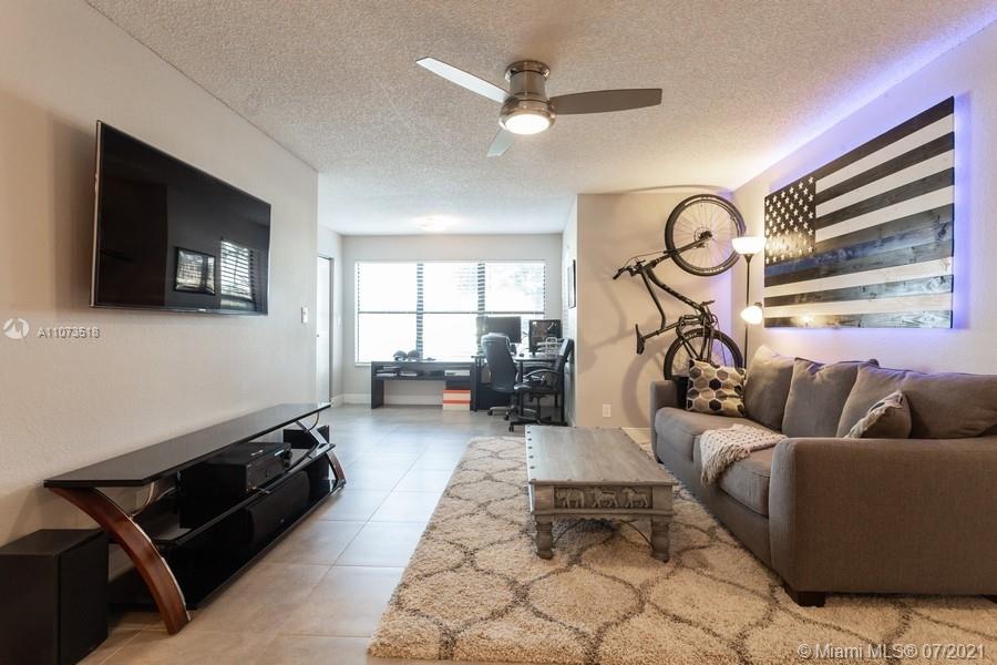 You'll love this stylish condo with terrific layout. Open plan with office/bonus space and laundry in unit. On corner and first floor, just steps to parking (parking is not assigned so can park where you like). Superb location, situated across from NSU and Academic Village that includes FAU, FIU, BCC and more. Also surrounded by shopping, dining and all conveniences. Opportunity for investors and graduate students. Can rent right away. Remodeled kitchen with granite. Bathroom also updated. Full-size washer/dryer. A/C is 2 years and W/H is 3 years new. 2" blinds, freshly painted... nothing to do but move-in. Community offers a gym, pool, tennis, BBQ and hot tub. Water, trash removal, amenities, reserves & more included in maintenance dues. Minimum 25% down. Pets up to 50lbs.