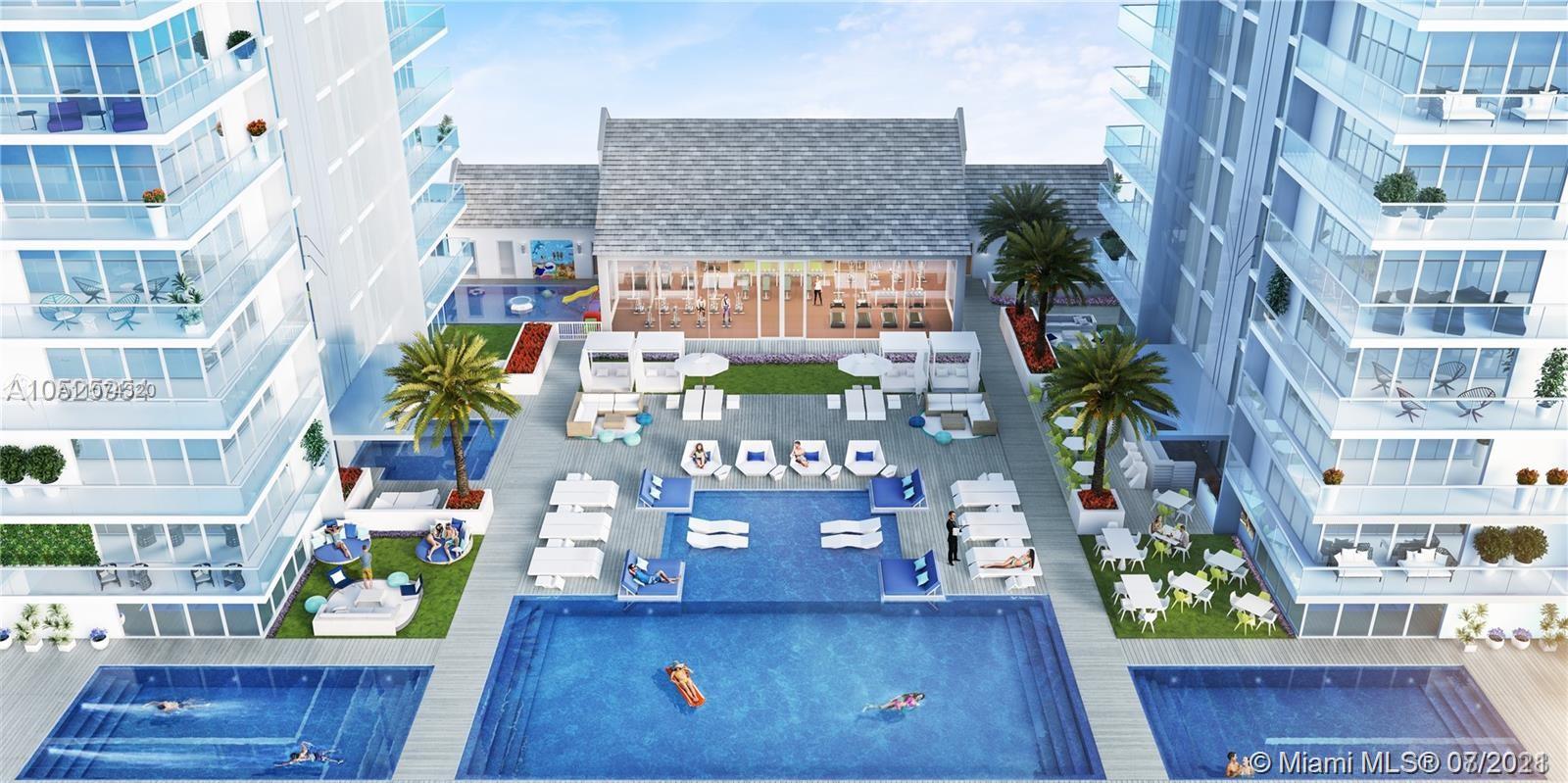 New Luxury Resort in Sunny Isles. About 5 minutes walking to the beach. Large 3 bed room apartment with 3.5 bathrooms. High 11 Feet Floor to Ceiling windows. Total of 2,348 Square feet. Large corner Balcony 294 S.F. 6-th floor is one level above Pool area. Italian Kitchen design with build-in Bosch coffee machine and top of the line Appliances. Beach shuttle and Beach Service, Large swimming pools and Jacuzzi. Professional Gym and Saunas. Movie Theater. Large Kids room. Park across the road with Playground and stage for concerts. Famous restaurants and grocery stores within walking distance. Building provides free services with limitations during a year on apartment cleaning, car wash, flowers and twice a year airport limo service. School A Graded. Call Listing Agent for showings.