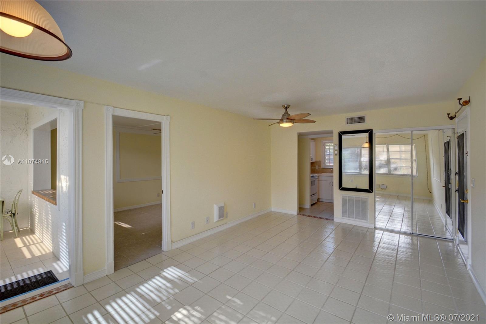 Incredible 1st Floor, 1BR/1BTH condo in the exclusive 55+ over guard gated community of Golden Lakes Village. Amenities include courtesy shuttle service to nearby stores, pool and sauna, clubhouse, fitness center, cafeteria, business center, library, billiards, auditorium with top name entertainment year round, shuffleboard, card rooms & community laundry facilities. Unit was just freshly painted, and has an additional 40 foot sunporch leading out to the back door. Accordian Hurricane Shutters protect all windows. Association requires 20% down