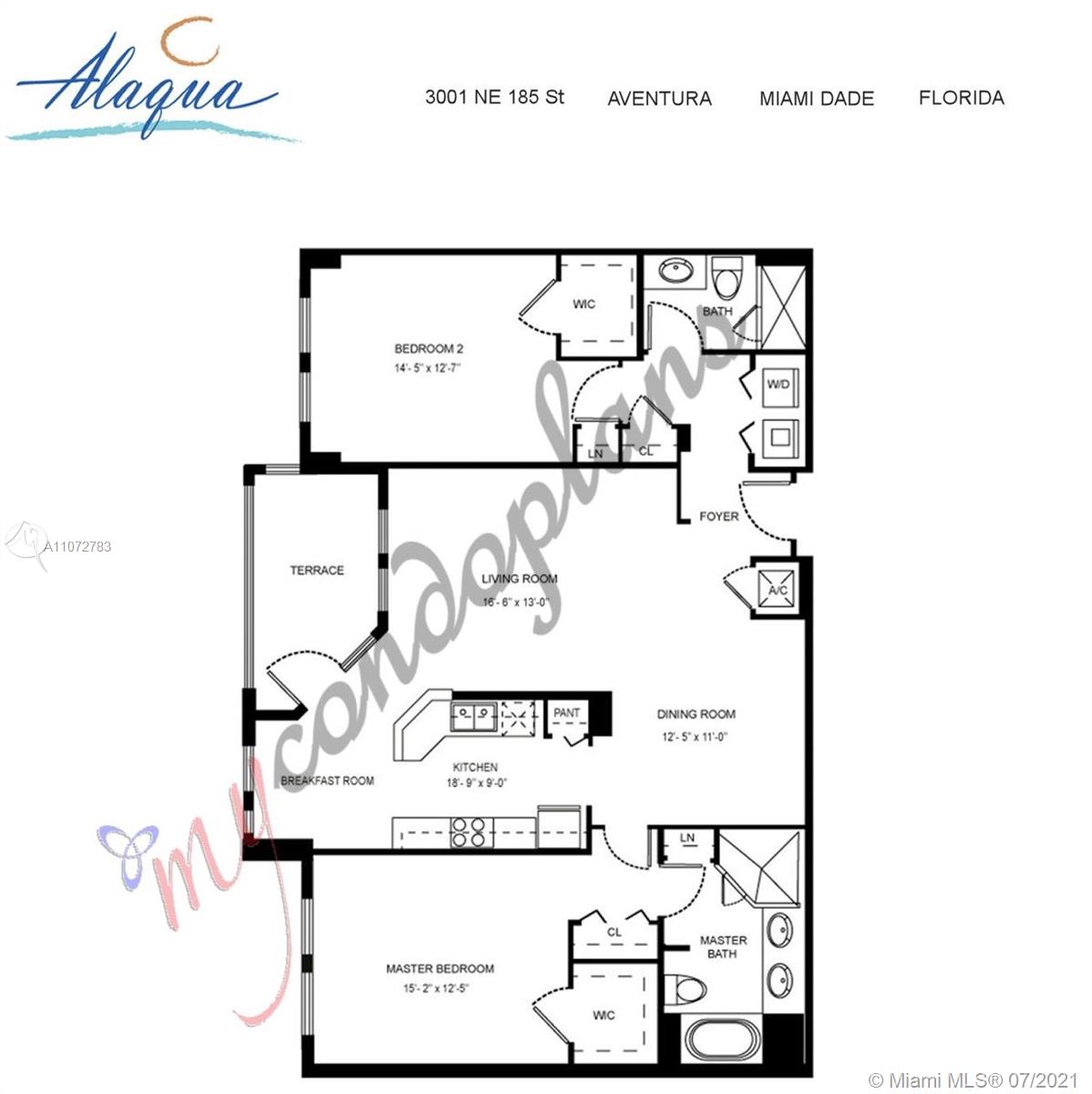 BEAUTIFUL 2 BED AND 2 BATH CONDO UNIT IN THE PRESTIGIOUS AND NEWLY RENOVATED ALAQUA, IN THE HEART OF AVENTURA, VERY CLOSE TO ONE OF THE TOP MALLS IN SOUTH FLORIDA: AVENTURA MALL!. ALSO CLOSE TO THE BEST SCHOOLS, RESTAURANTS AND ENTERTAINMENT. IT HAS BEEN SECOND HOME FOR THE ORIGINAL OWNERS WHO HAVE KEPT IT IMPECCABLY. THIS SPACIOUS UNIT FEATURES A NICE TERRACE OVERLOOKING THE POOL AND COURTYARD. 10' HIGH CEILINGS AND BEAUTIFUL KITCHEN WITH STAINLESS STEEL APPLIANCES AND GRANITE COUNTER TOP. GET YOUR STEPS IN WALKING WATERSIDE ALONG THE RENOVATED DOCK. START YOUR DAY IN THE COMPLETE GYM OVERLOOKING THE WATER. TWO ASSIGNED AND COVERED PARKING SPACES IN THE SAME LEVEL. SPECTACULAR AMENITIES INCLUDING A SPA AND A LARGE HEATED POOL. 24 HRS. GUARD. GATED ENTRY IN A FENCED AND SECURE COMMUNITY