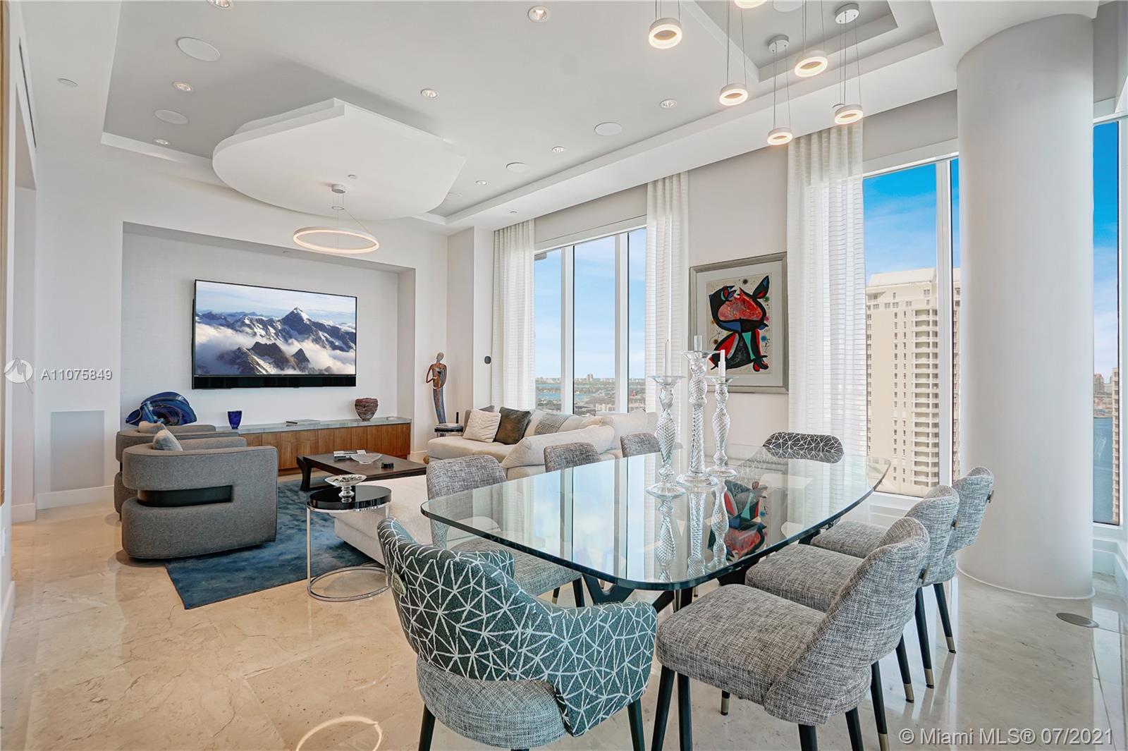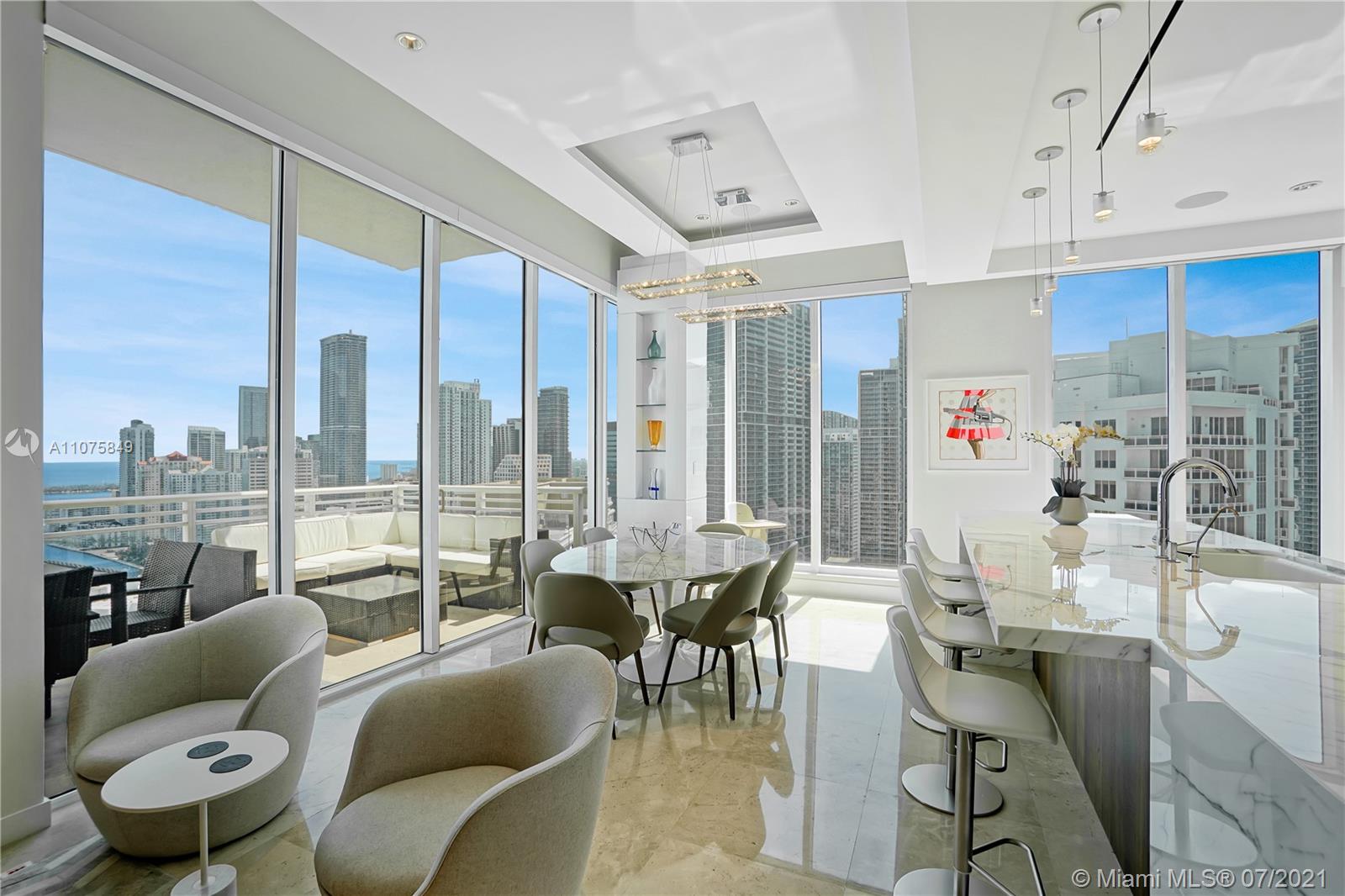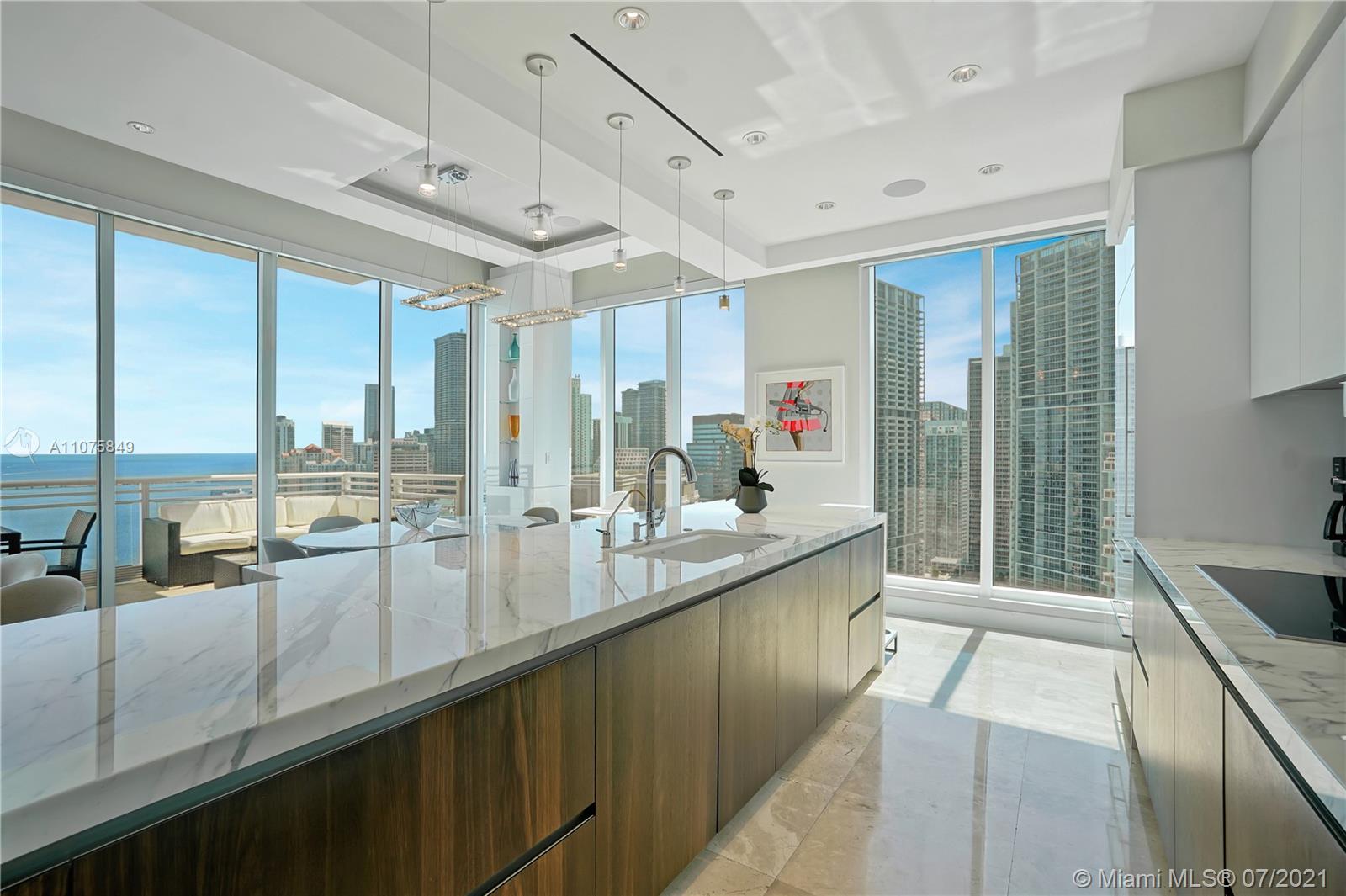 Situated high atop Asia, Brickell Keys premiere condominium with concierge amenities. Experience this breathtaking totally updated unit. 4 generous balconies face east, south and west with sunrise and sunset views of Biscayne Bay, Miami Beach and the Ocean. A sensual enchanting haven awaits you as you enter via private elevator. All marble floors, Snaidero kitchen with Miele and Sub Zero appliances. 12 foot ceilings. A Savant home automation system controls lighting, TVs and electronic drapes from your smart phone. Each of the 4 elegantly appointed bedrooms has individual temperature control. You will not want to leave once you experience this home in the sky. CLICK ON VIRTUAL TOUR LINK to see video>>>