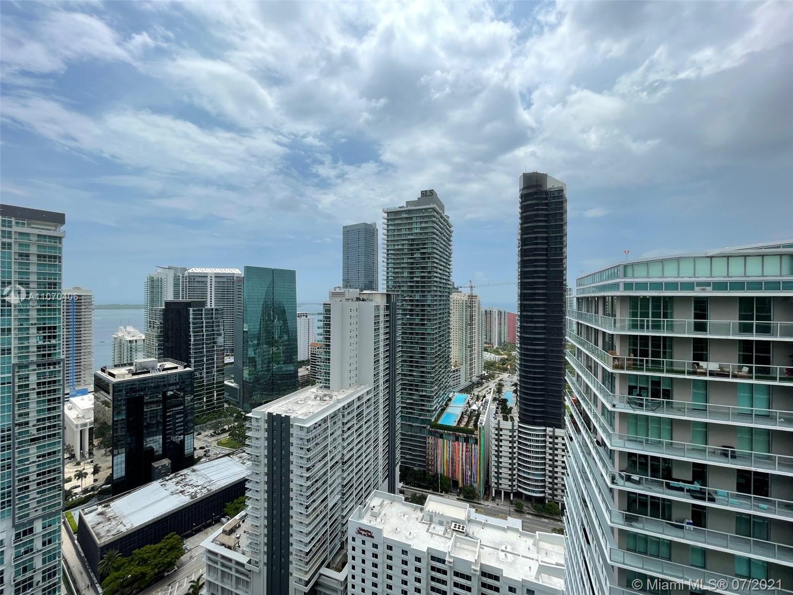 Gorgeous City and Water Views from this Penthouse at Axis North Tower. This beaufiful 2 bedroom, 2 bathroom plus Den Penthouse features an expansive balcony overlooking the Brickell Skyline. The DEN can serve as an office. Tanden parking with 2 parking spaces. Great amenities: 2 swimming pools, Gym, party room and more. Excellent location in the heart of Brickell. Walking distance to Metro Mover, restaurants, etc. Must see. Unit is vacant and ready to move.