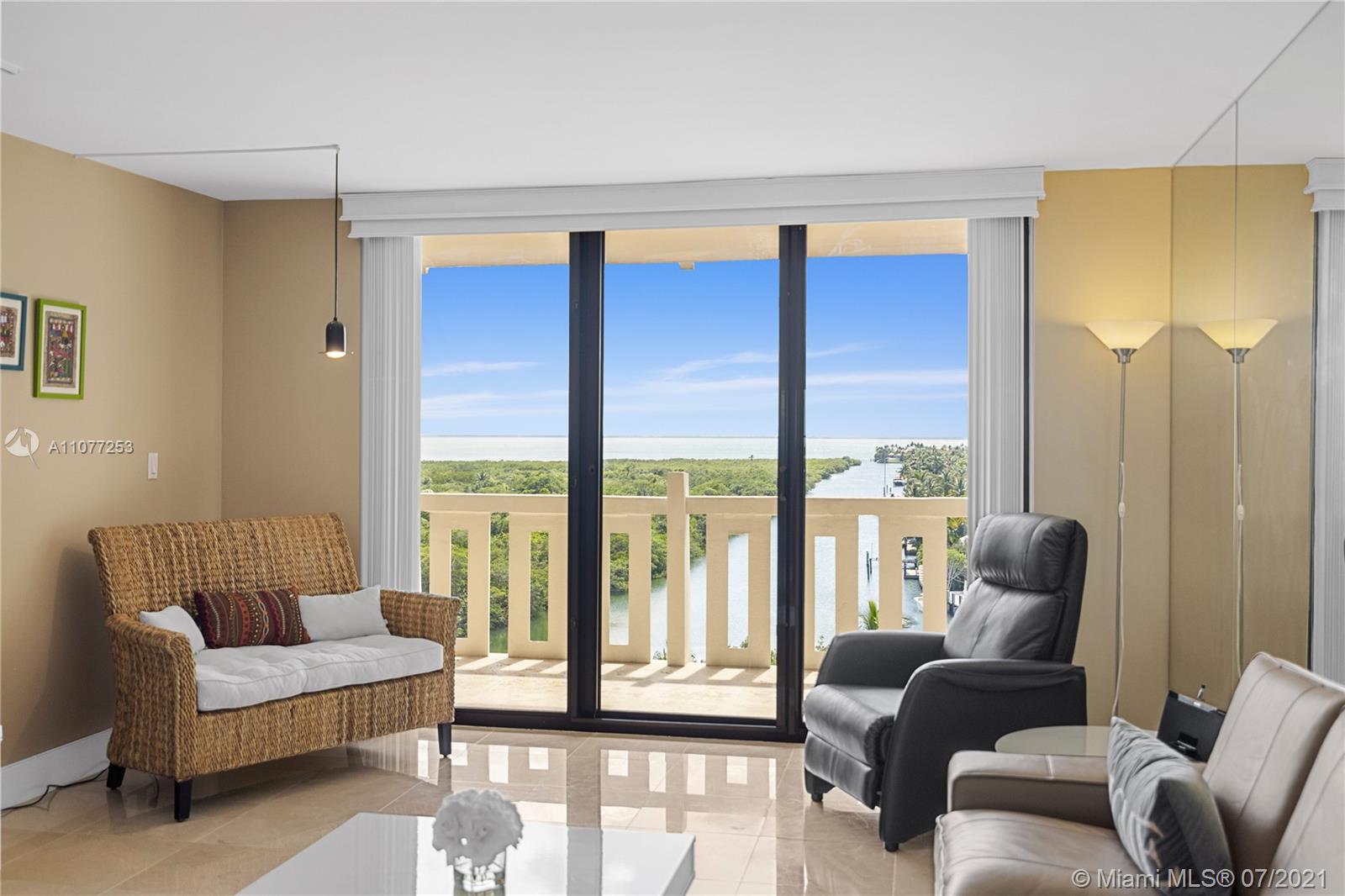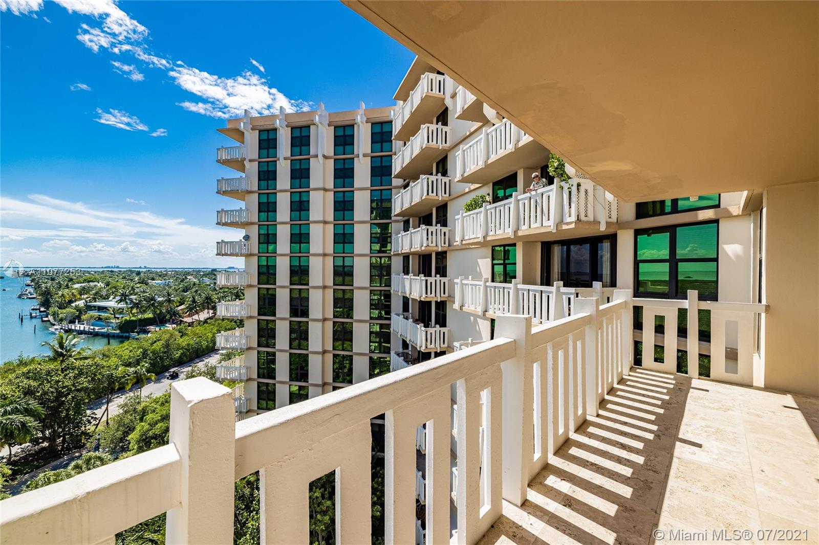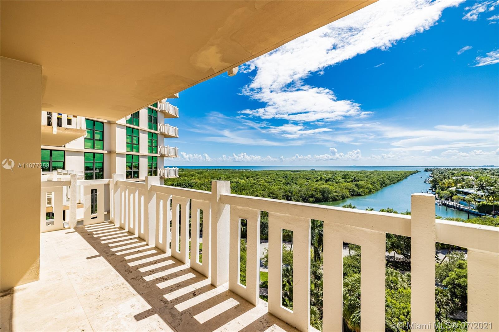 Resort-like serenity awaits in this Island Paradise! Spectacular views of the bay, canal, and state park in this updated flowing unit with double balconies. Enjoy spacious open living, dining and large kitchen with new Bosch appliances. Lots of counterspace to whip up your favorite meals and entertain family and friends. For extra privacy, unwind in split bedrooms—extended main suite retreat with private balcony on one side and guest room and bath on other. Polished travertine marble floors throughout, impact windows, separate storage unit. Great amenities with private access to incredible beach, heated pool, fitness center, tennis court, gazebo and BBQ. Assessment paid. All in a fantastic Key Biscayne location close to shops, restaurants, and natural attractions.