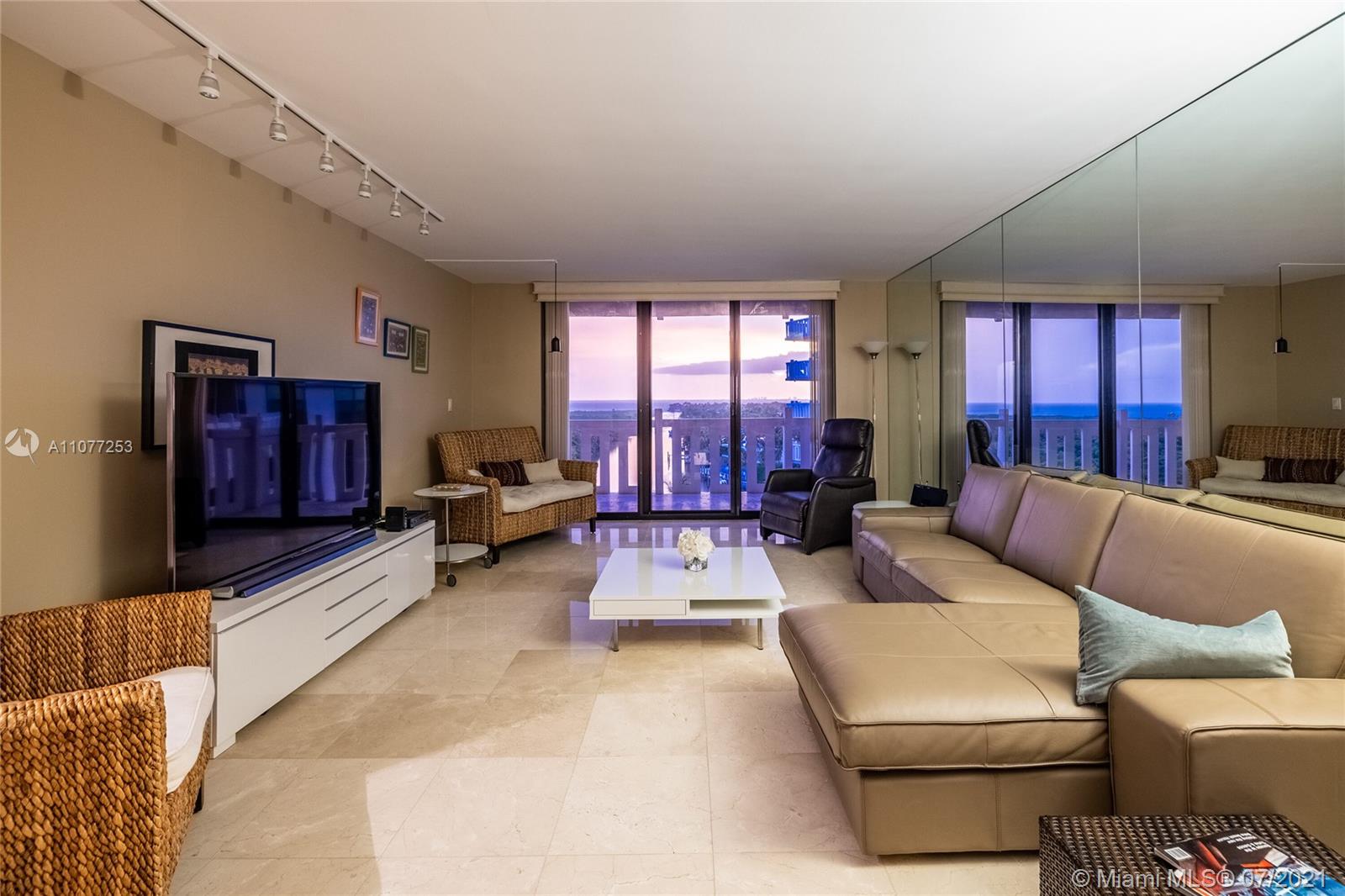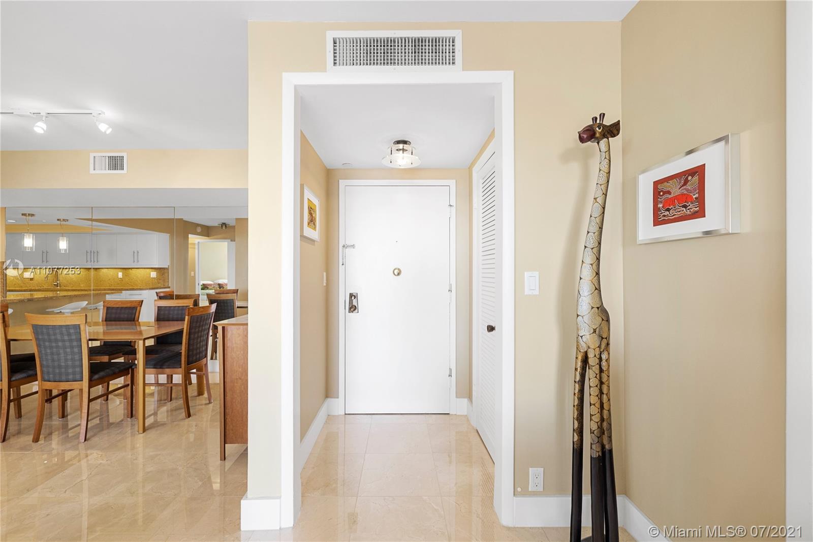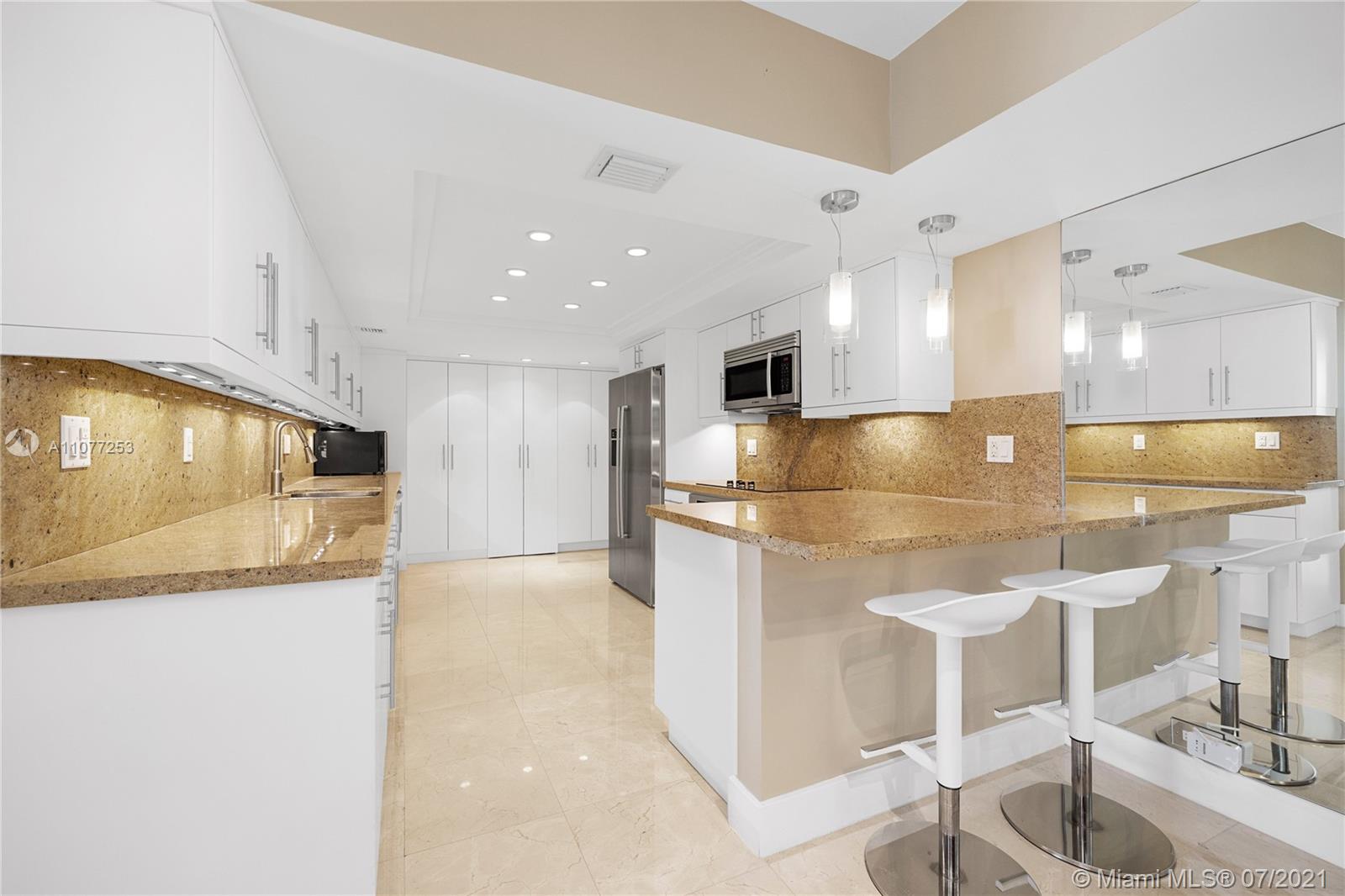 Resort-like serenity awaits in this Island Paradise! Spectacular views of the bay, canal, and state park in this updated flowing unit with double balconies. Enjoy spacious open living, dining and large kitchen with new Bosch appliances. Lots of counterspace to whip up your favorite meals and entertain family and friends. For extra privacy, unwind in split bedrooms—extended main suite retreat with private balcony on one side and guest room and bath on other. Polished travertine marble floors throughout, impact windows, separate storage unit. Great amenities with private access to incredible beach, heated pool, fitness center, tennis court, gazebo and BBQ. Assessment paid. All in a fantastic Key Biscayne location close to shops, restaurants, and natural attractions.