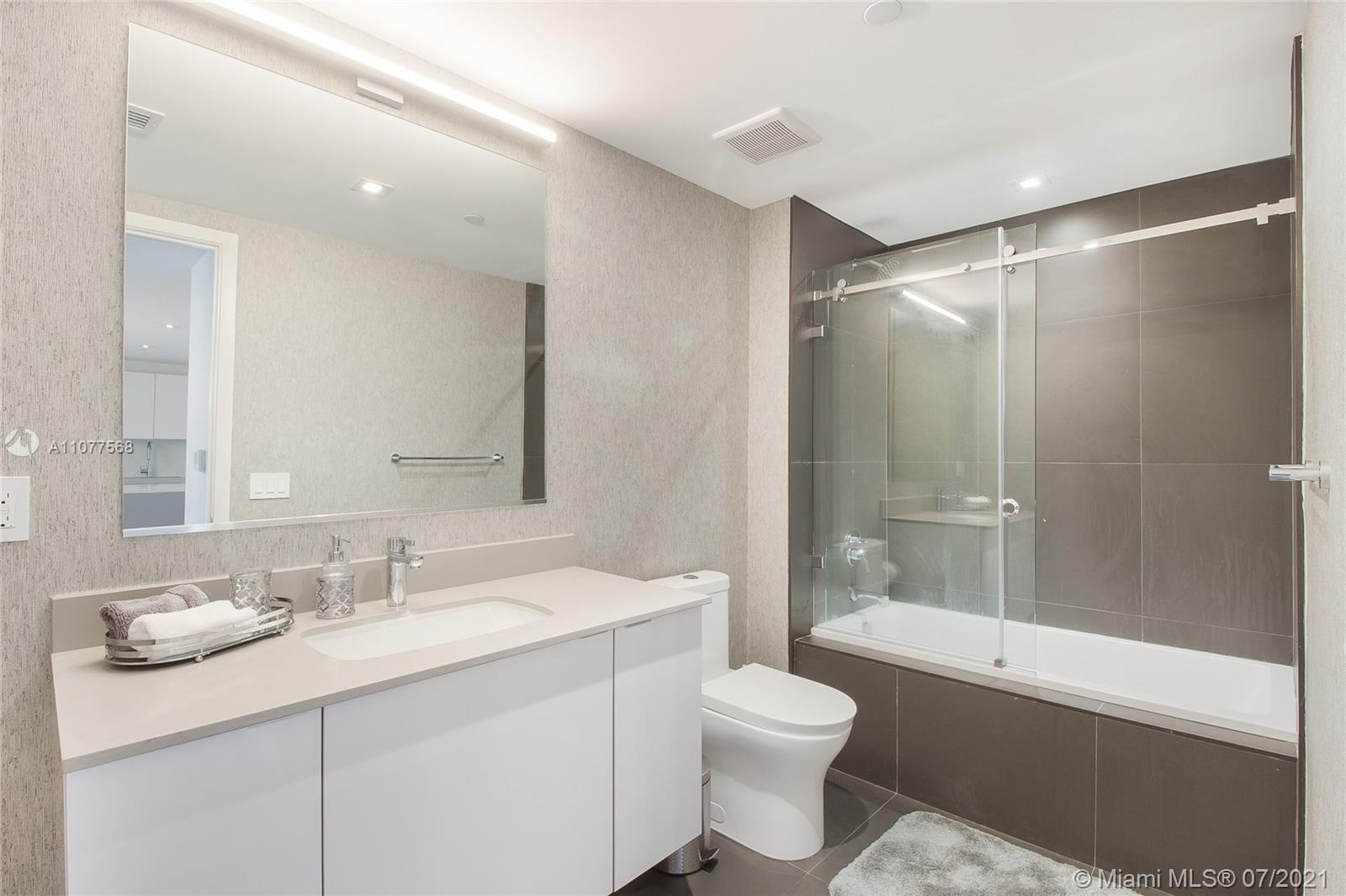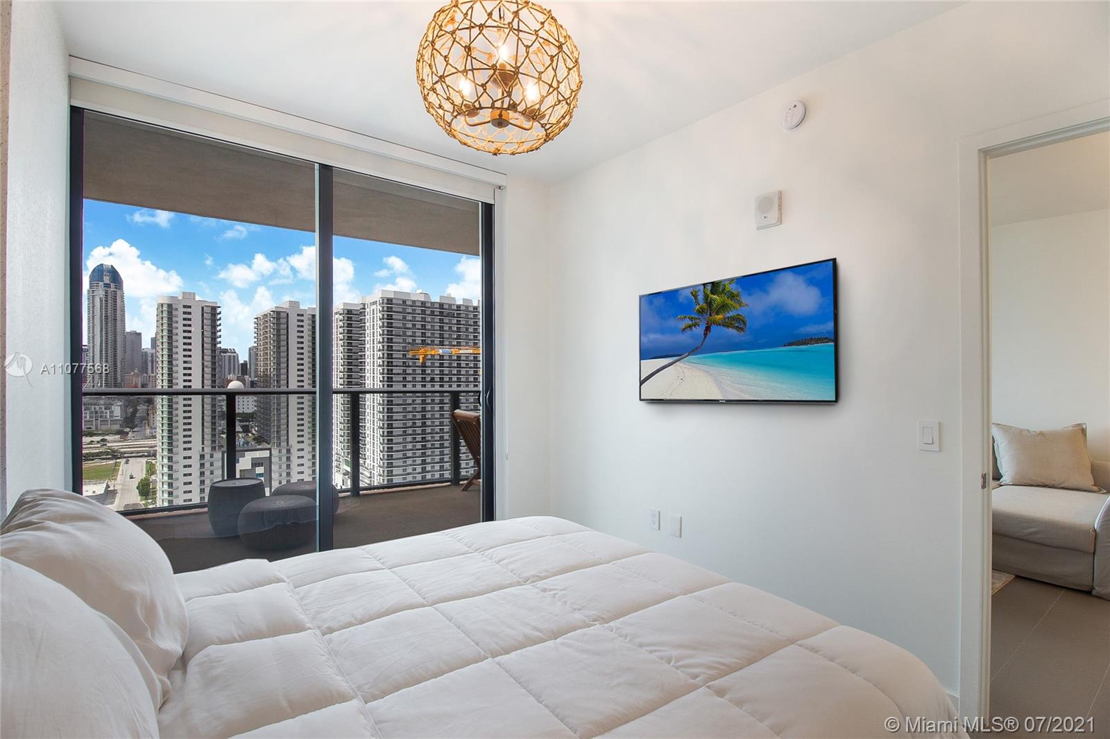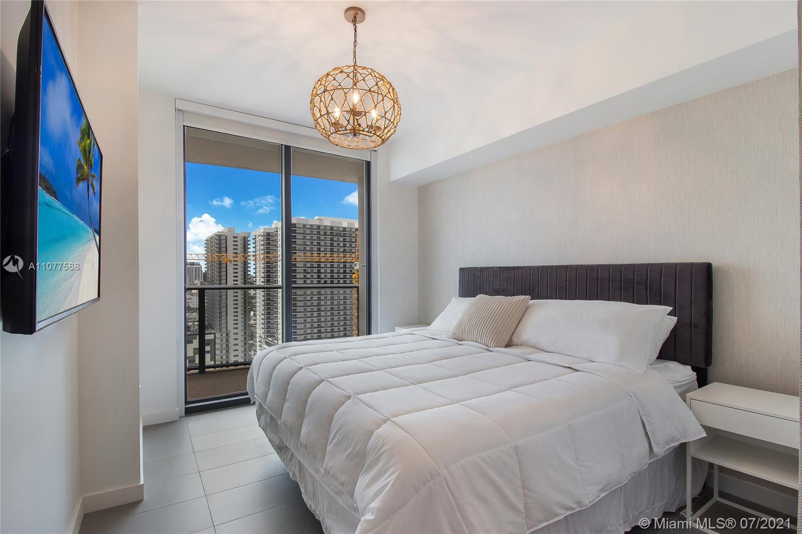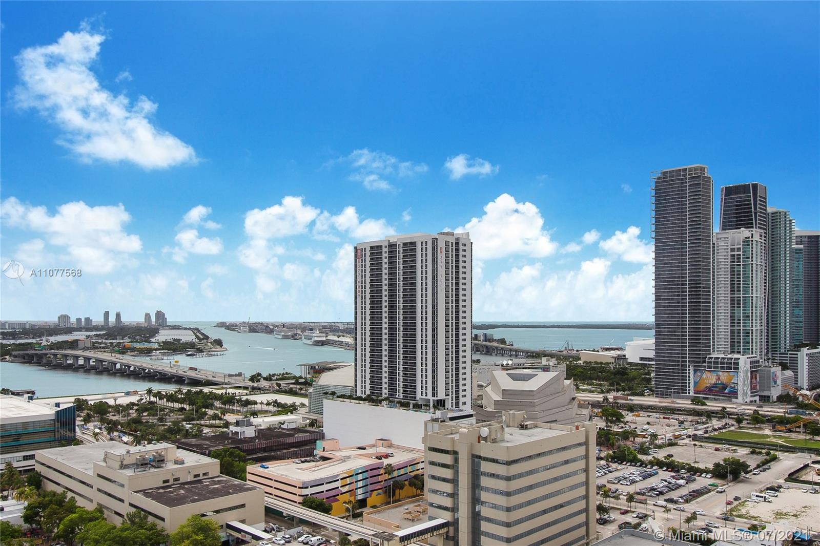 Turnkey unit located in the Arts & Entertainment District, this 2 bed/ 2 bath condo has endless panoramic bay and city views. Tastefully decorated and fully furnished. Includes basic cable and Internet. 2 parking spaces. (One self park, One Valet) Amenities include: 3 pools, jacuzzi, spa, gym yoga and meditation areas, high speed internet throughout the entire building, glass racquetball court, movie screening theater, modern game room, outdoor lounge and BBQ area. 24/7 security & concierge. MetroMover station one block across the street. Minutes aways from major restaurants, bars and shopping. 15 Mins drive to Miami International Airport. Short Term rentals allowed. Condo eligible for 3% downpayment!
