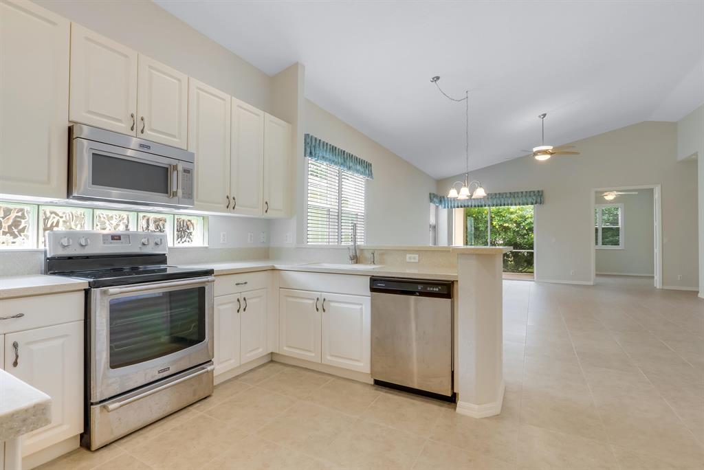 Welcome home to Brittany Bay in the resort style community of Andros Isle. This stunning 3 bedroom and 2 bathroom one story is as incredible in person as in the photos. Over 2200 sq. ft. of total living space and volume vaulted ceilings give you ample space and an impressive wow factor upon entering. Freshly painted in a neutral light gray throughout. Tile and beautiful wood floors, no carpet here. Updated bathrooms. White kitchen has stainless appliance package with newer appliances. Treyed ceilings in the master bedroom and large closets. En suite bathroom is HUGE with two separate vanity and sink areas and massive shower all recently renovated. Accordion shutters. CBS construction and barrel tile roof for ease of maintenance. This villa has it all!