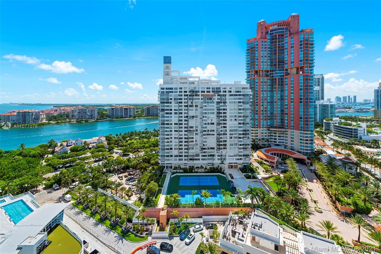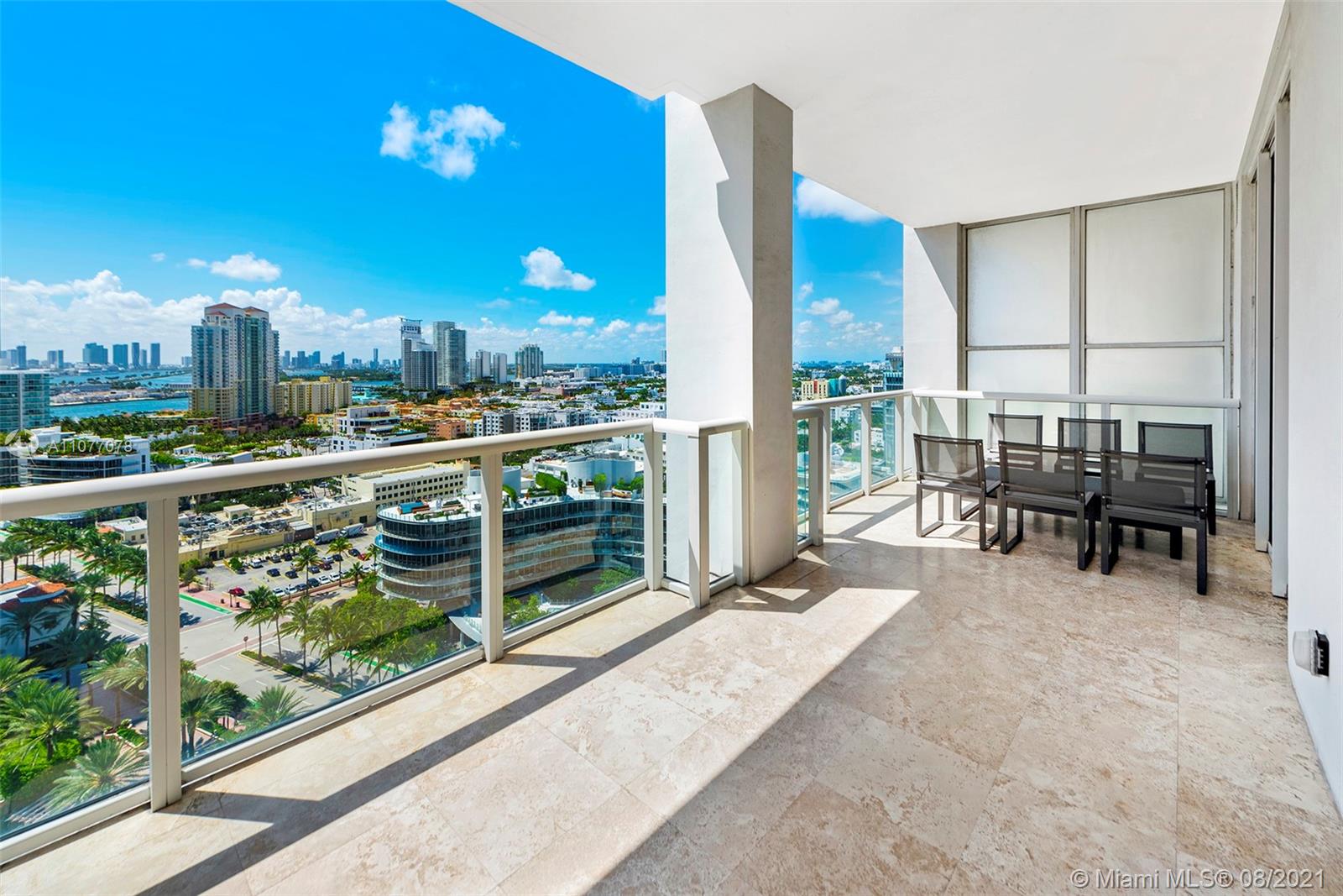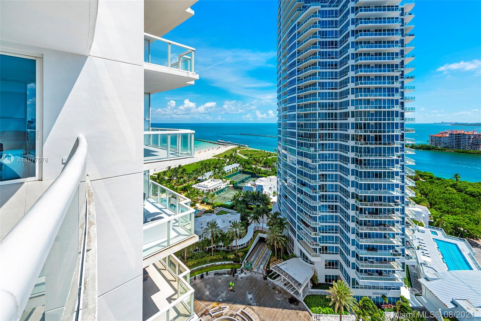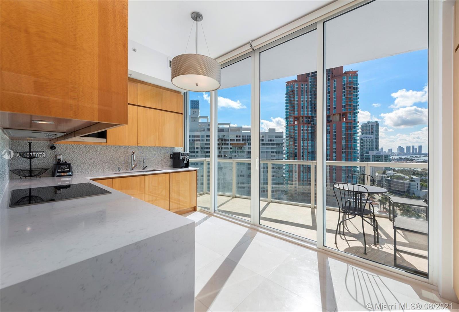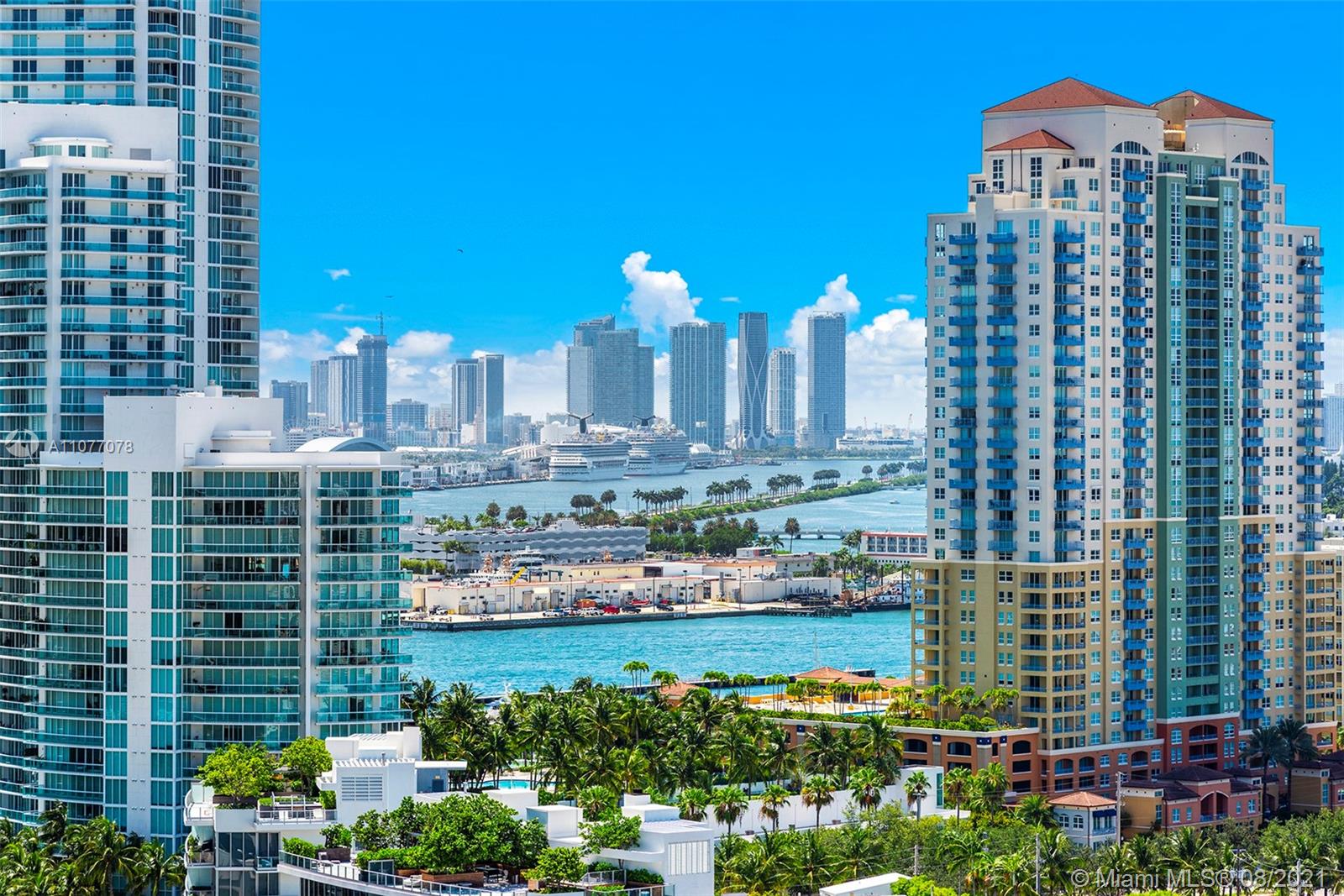 Enjoy striking southwest exposures from this corner residence with the most beautiful sunlit Miami Beach views, parading cruise ships passing Fisher Island and vistas all the way out to the port of Miami and Downtown skyline sunsets. Upgraded modern baths and a unique kitchen wrapped by floor-to-ceiling glass, with its own balcony, are some wow features. Multiple terraces, including an oversized double width terrace, are amazing for outdoor entertaining. The split floor plan features a private lobby, formal living + dining rooms with dynamic views, plus huge storage area. Continuum is a 13 acre, private beachfront oasis with amenities and attention to its residents second to none. Private restaurant and beach club, 3 har-tru tennis courts, 3 story gym/spa/salon plus 3 pools.