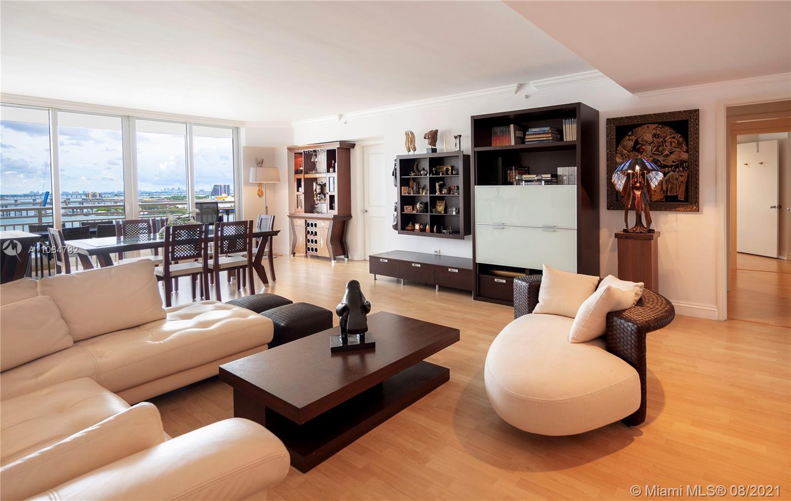 Luxurious 2-bedroom (Plus one converted), 2.5 bathrooms condo located in the exclusive Brickell Key Island in one of the most desirable buildings in South Florida, the 3 Tequesta Point at Brickell Key, offering pool, fitness center, spa and 24 hour concierge to mention a few. The impeccable unit boasts beautiful wooden floor throughout and beautiful details such as custom closets, custom blinds, hurricane proof curtains, and more. Large main bedroom has 2 closets and large bathroom with spa Second bedroom has plenty of closet space and large bathroom that shares with 3rd bedroom (a Conversion made by owner). Livingroom and dining areas have stunning views of the Intracoastal. Walking distance of the best dining, shopping, and lifestyle in Miami. Live in Paradise!