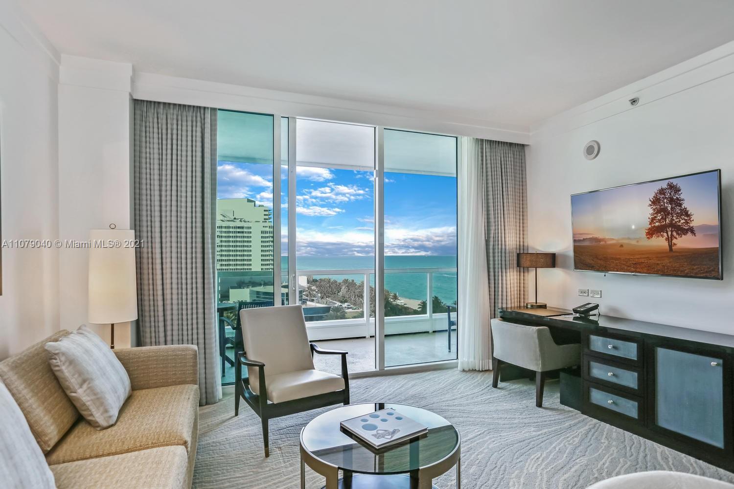 Beautiful just refurbished 2 bedrooms/2.5 baths w/ocean & pool views at The Fontainebleau III. Enjoy full service, vacation-style living in a furnished turnkey unit with king bed, sleeper sofa & more. Enroll in hotel rental program & receive income while away! The Fontainebleau Resort offers luxury amenities on 22 oceanfront acres including award-winning restaurants, LIV night club, Lapis spa & state-of-the-art fitness center. Maintenance includes: AC, local calls, electricity, valet + daily free breakfast in the owners lounge.