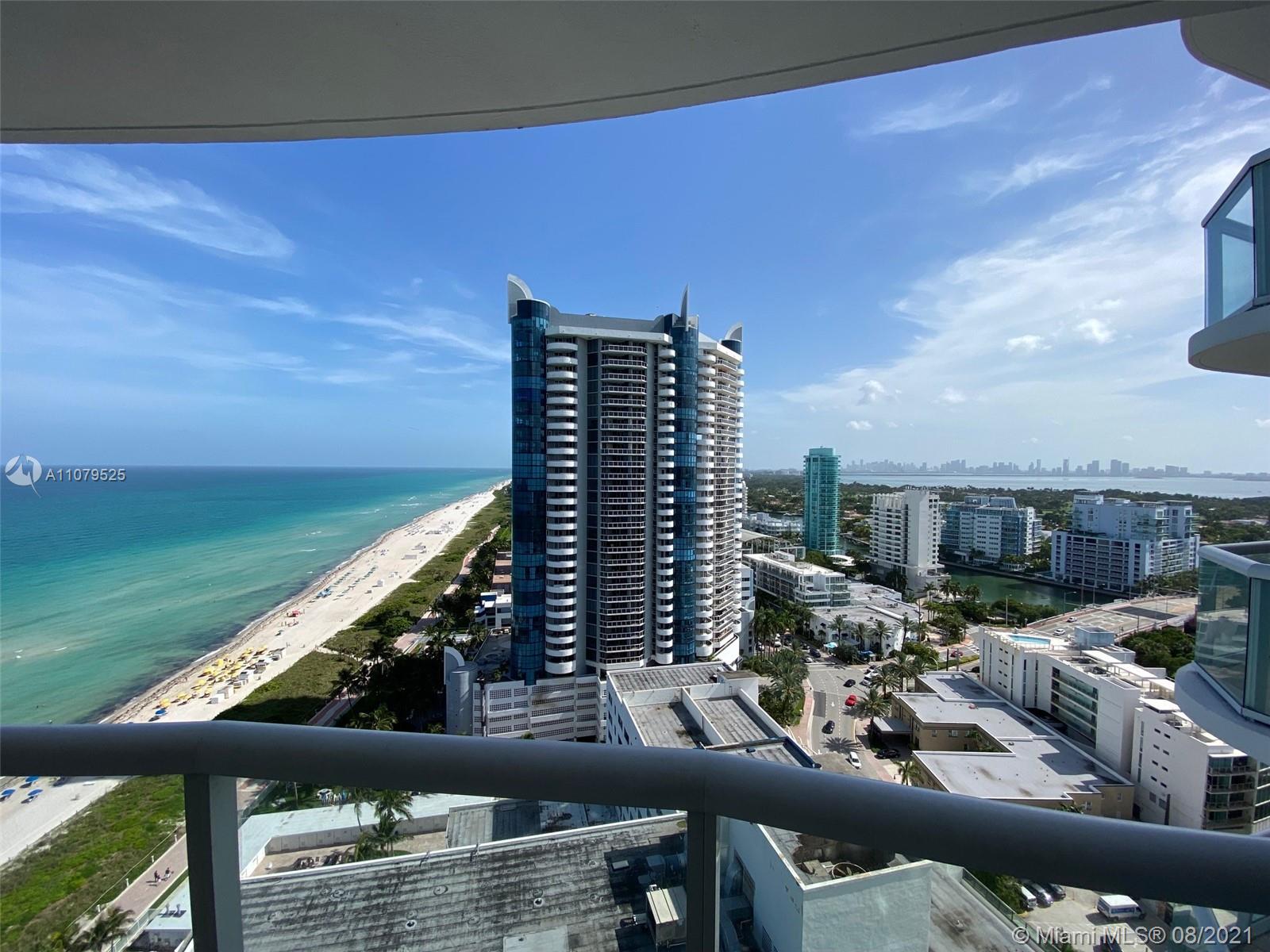 23rd floor unit with breathtaking unobstructed views of the Ocean, Intracoastal and Downtown Miami Skyline! Access to large balcony from living room and master through floor to ceiling sliding glass doors. Recently refinished cherry wood floors. Stainless steel appliances, granite countertops and washer dryer in unit. Luxury amenities include: direct beach access with private beach chairs, state of the art gym w/ direct ocean view, sauna, steam room, tennis court, putting green, heated pool, 24 security and attended front desk, 24 valet. Enjoy long walks & bike rides along the Miami Beach Boardwalk. Must see!