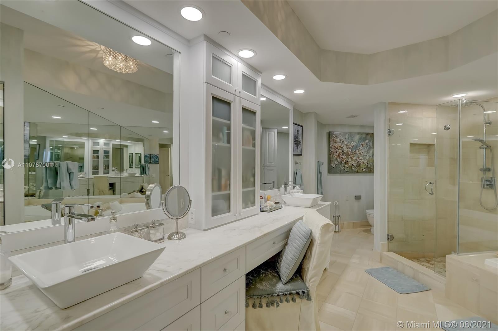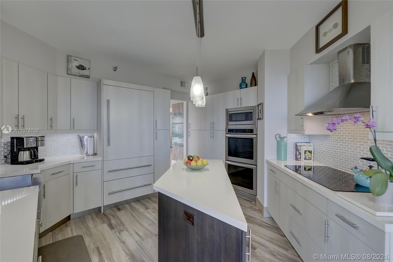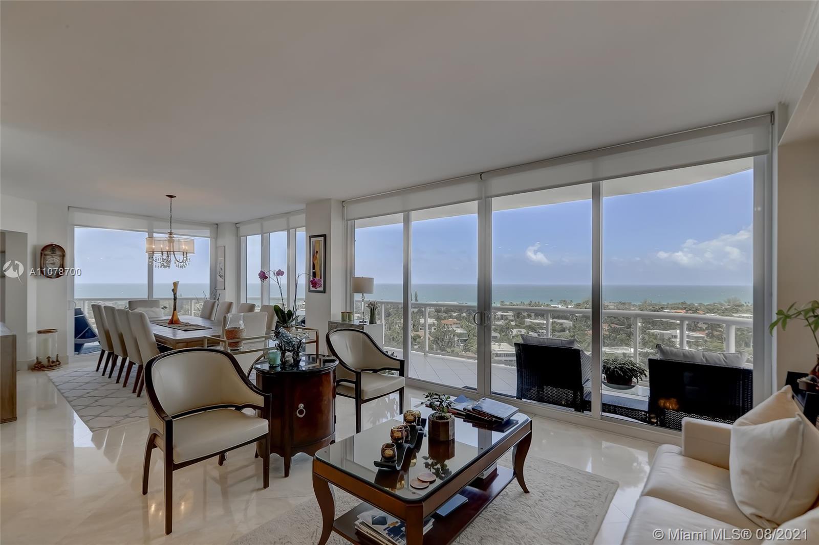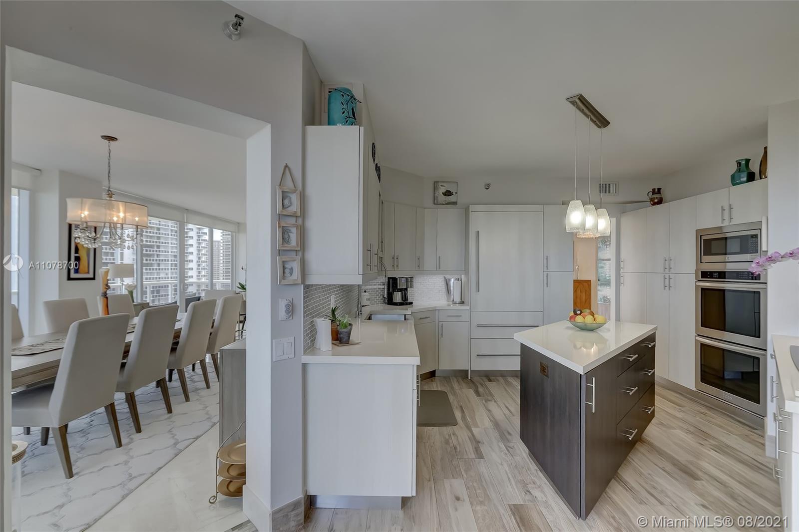 Enter this luxurious residence through your private elevator and immediately enjoy breathtaking Ocean and Intracoastal views seen from within the unit. Huge wraparound balcony accessible from every room. Direct East and SE views in the highly desirable line 02. Features marble floors throughout, Italian porcelain tile in two of the bedrooms, open and spacious concept, floor-to-ceiling hurricane impact windows. Contemporary kitchen, Sub Zero refrigerator, dual wall oven & quartz counters. Custom-made closets. The 3rd bedroom is being used as a den/home office. Prestigious One Island Place in Aventura is a resort style community: State of the art fitness center, spa w/ private treatment rooms, sauna, steam room, 2 pools, 3 hot tubs, café, 2 tennis courts. 2 marinas located walking distance.