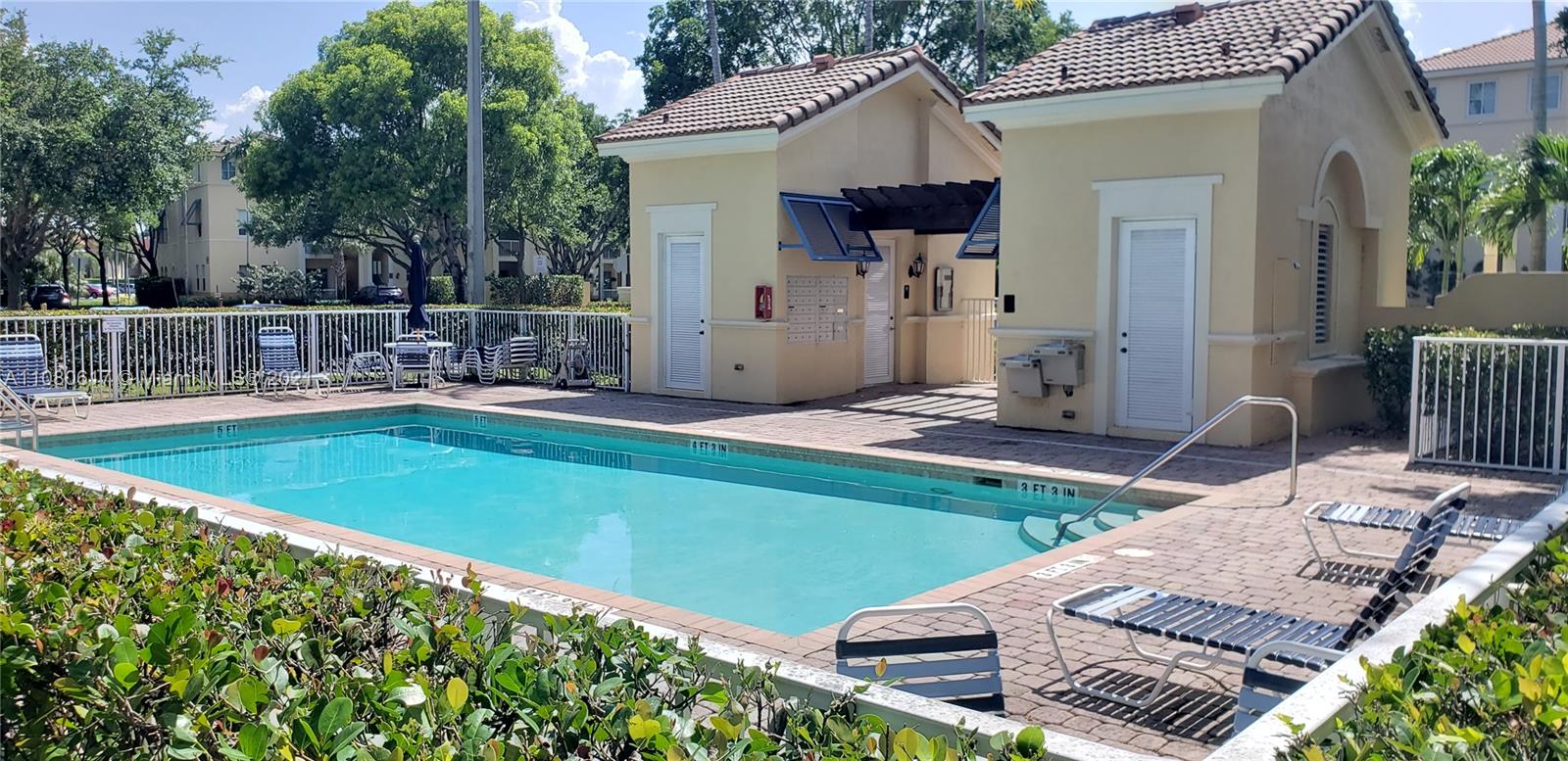This rarely available one story unit has a spacious floorplan with 3 bedroom 2 baths that feels like a villa. Boutique gated community nestled in the Jacaranda area with short walk to Central park. The unit features 2 patios in front and rear of unit and has a nice waterview and distant golf views.
