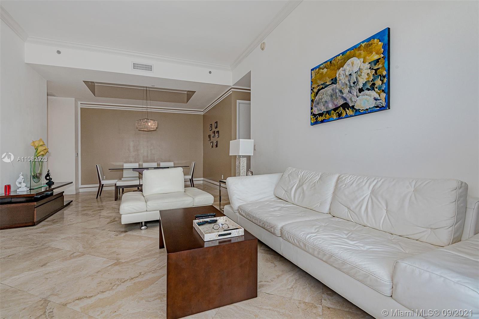 Rented until March. Great tenant is willing to stay longer if the buyer is an investor and wants to get income. 11 ft ceilings, semi private foyer, spacious 2 bedroom/2 bathroom with open intra coastal view. Unit has marble floors throughout, built-in closets. Gourmet kitchen with European cabinetry, Sub-zero refrigerator, built in coffee/cappuccino maker. State of the art amenities, spa and fitness facing the ocean, 2 heated pools, Jacuzzi, an on-site restaurant with full beach service, 24 hour security. Beachfront building with beach service and valet. Please give 24 hrs notice to show.