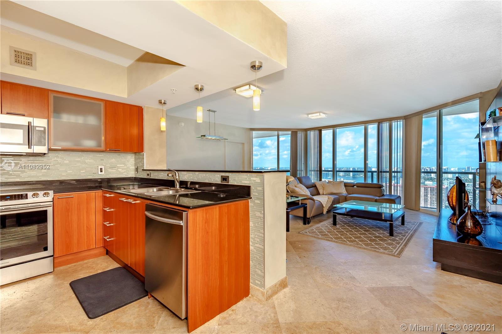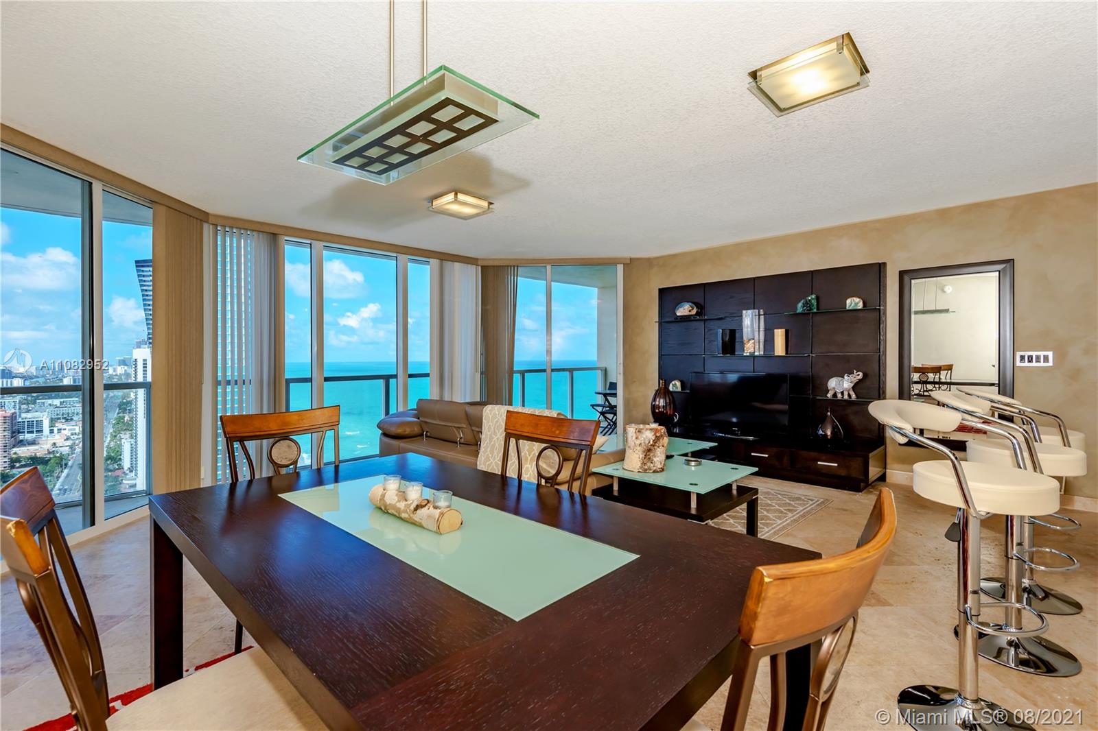 The best, unobstructed 270 degree views & rarely available corner residence. Floor to ceiling windows in every room truly capture some of the best ocean & intracoastal views in Sunny Isles; at night it's even better! Split floor plan with 1423 sq/ft plus extended balconies (top 5 floors only) provide a massive wraparound terrace & outdoor space. Updated kitchen with granite countertops, backsplash, & stainless steel appliances. Marble flooring, blackout blinds in both bedrooms, full size washer/dryer, hurricane impact doors/windows, & fully furnished. La Perla offers valet, heated pool, gym, & beach services with chairs, towels, & umbrellas. Great location, walk to restaurants & shopping. Rent 12 times a year! Buyer can assume future bookings & management. Rent over 300+ nights a year.
