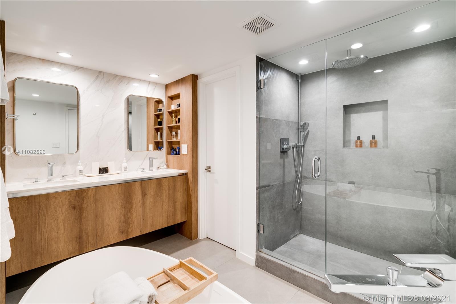 Have you ever wanted to live in the Four Seasons or the Setai, this is your chance to live like you're on vacation every day. Wake up in this luxurious, designer renovated unit (2019) to ocean and marina/bay views. Custom Italian cabinetry in kitchen and baths, subzero and wolf appliances, 108 bottle subzero wine cooler, 30 x 60 Italian Porcelain flooring throughout. 2nd bath has 30 x 60 slabs in shower and restoration hardware vanity. Master bath features custom makeup vanity with wood paneled walls, custom Italian built vanity, full slab of marble wall above vanity with mirrors on top. Fixtures are all Hansgrohe in master bath & in kitchen & Albert soaking tub. Plenty of storage w/ all 5 closets fully built out. No expense spared, view will never be obstructed by any future dev..