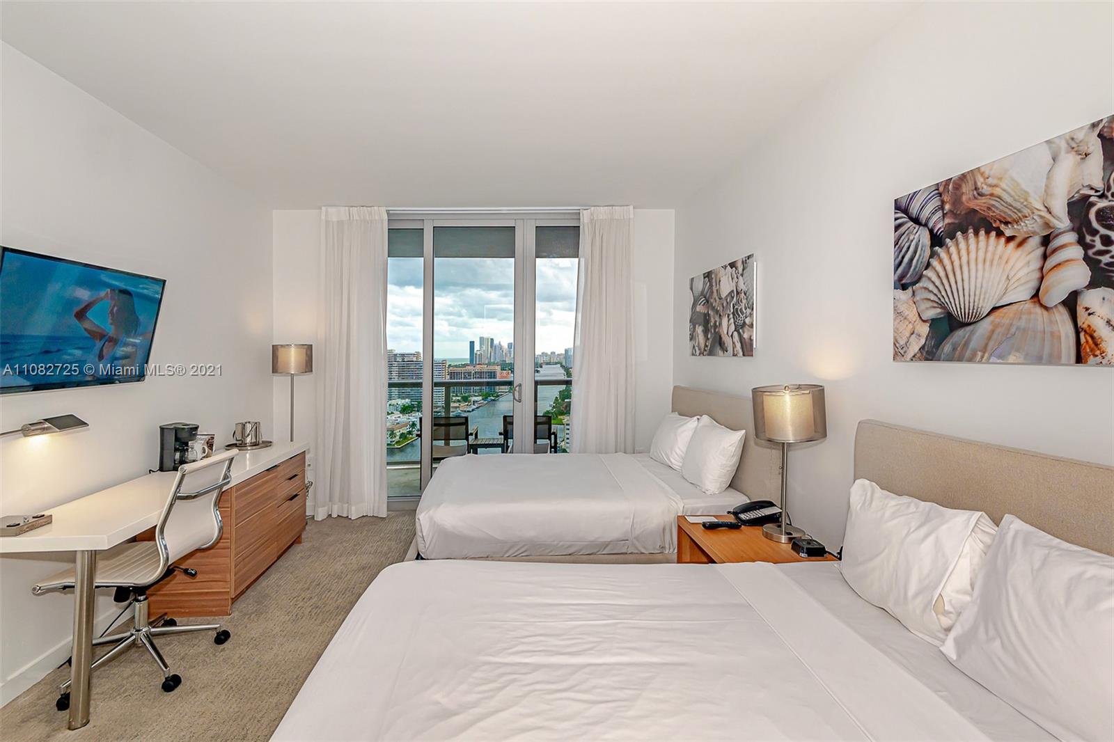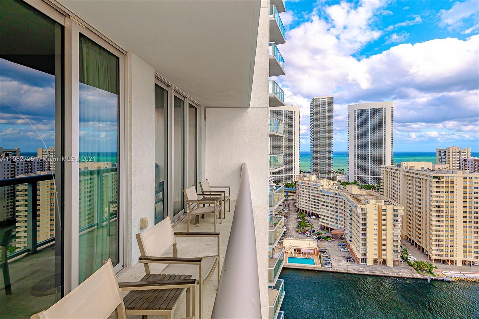 Amazing Apartment 2 Bedroom and 2 Bathroom Unit with South Views to Ocean and Intracoastal in a Full Services Condo Hotel Building, High Floor and best South View from Line 03 at 23er floor. Full furnished. You can split Unit in two apartments. Very Nice views of the ocean, city and intracoastal. Great Property for investors. No rental restrictions, allows daily rentals! Could be rented it as 2/2 or 1/1 and 1 Studio Unit with 2 private entrances. Enjoy resort style amenities rooftop infinity pool with cabanas, valet parking, complimentary shuttle to private 3 story Hyde Beach Club, with pool and restaurant, fitness center and much more